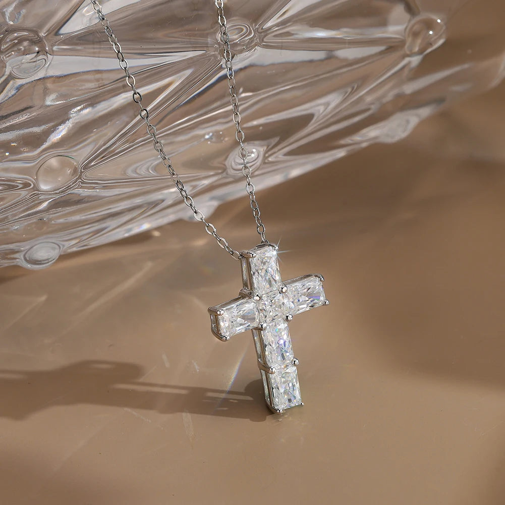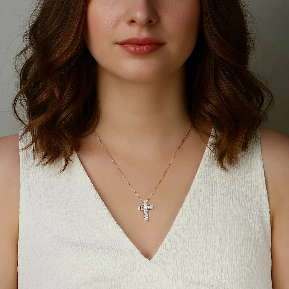 Öffnen Sie Medien in Modal Silver cross pendant necklace with 'Real Sterling 925' stamp on a white background Öffnen Sie Medien in Modal Öffnen Sie Medien in Modal Öffnen Sie Medien in Modal Öffnen Sie Medien in Modal Gold cross pendant necklace with clear stones on a white background Öffnen Sie Medien in Modal Gold cross necklace with diamond-like stones, measurements, and product details on a white background.