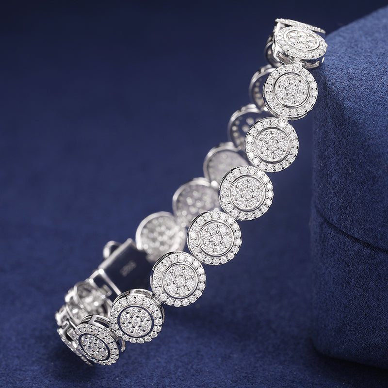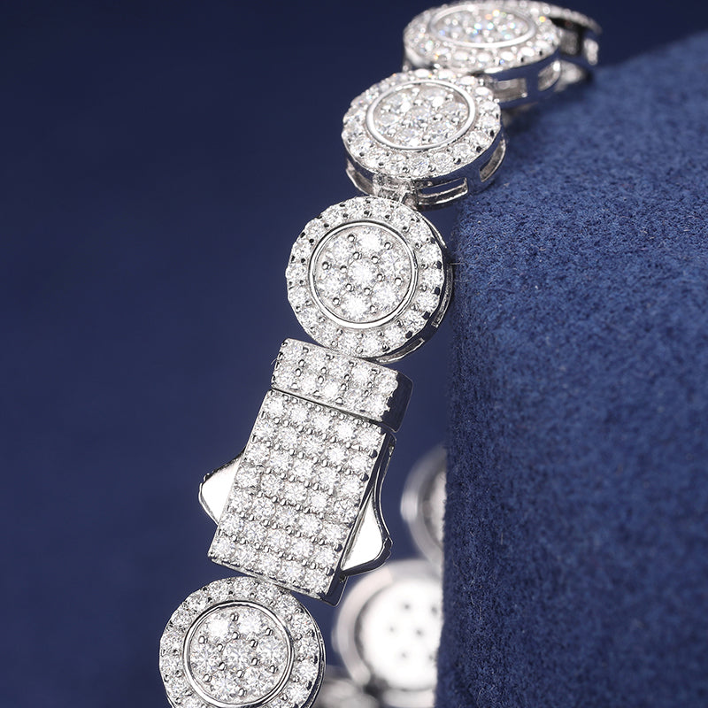 Introducing our 9mm Round Cut Moissanite Bracelet in Sterling Silver. This elegant bracelet features brilliant 9mm round cut moissanite stones, each meticulously set in a high-quality sterling silver band. The round design ensures a classic and timeless look, perfect for adding a touch of sophistication to any outfit. Ideal for both everyday wear and special occasions, this bracelet is crafted to shine and captivate with every movement. Elevate your jewelry collection with this stunning piece, designed to dazzle and inspire. 💎✨