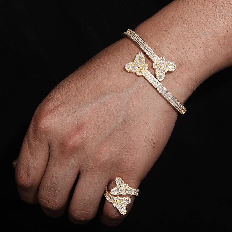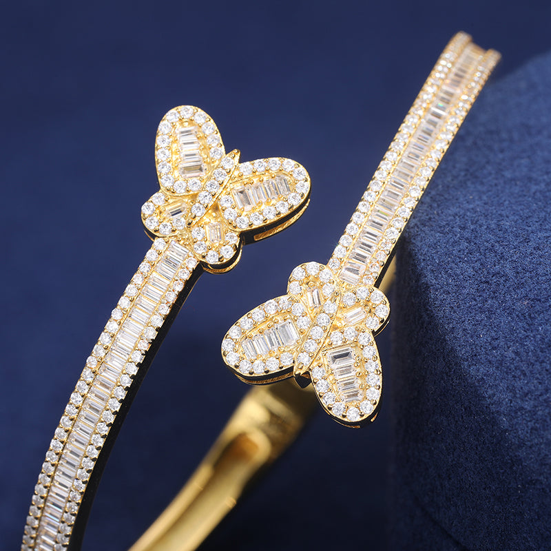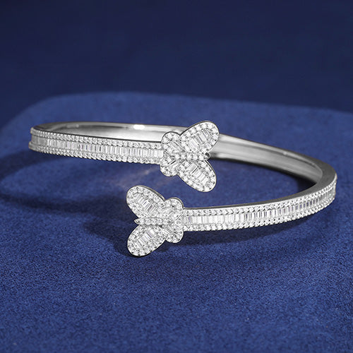 BAGUETTE MOISSANITE BUTTERFLY BANGLE BRACELET IN STERLING SILVER