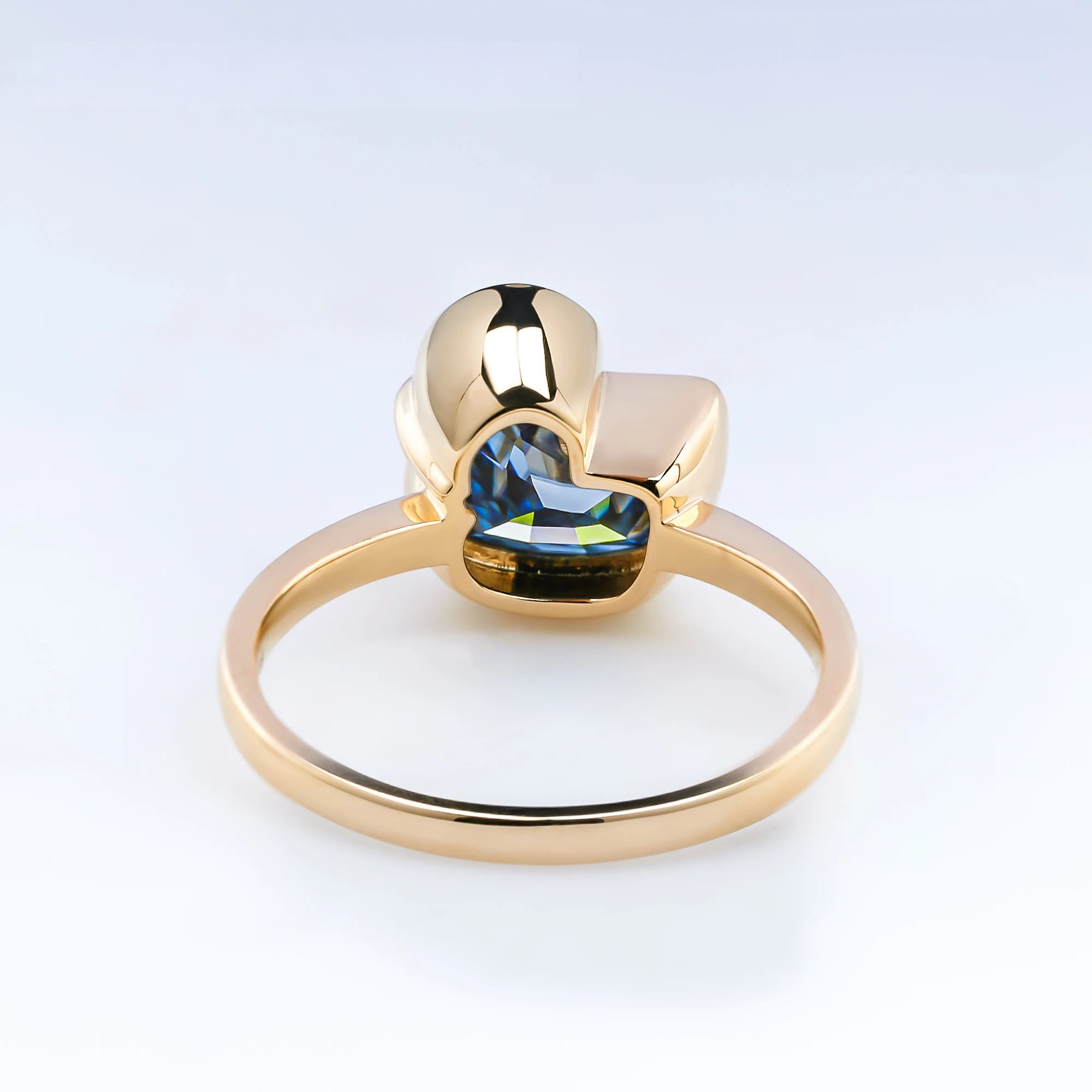 BLUE MOISSANITE DUCK CUT ENGAGEMENT RING IN SOLID GOLD