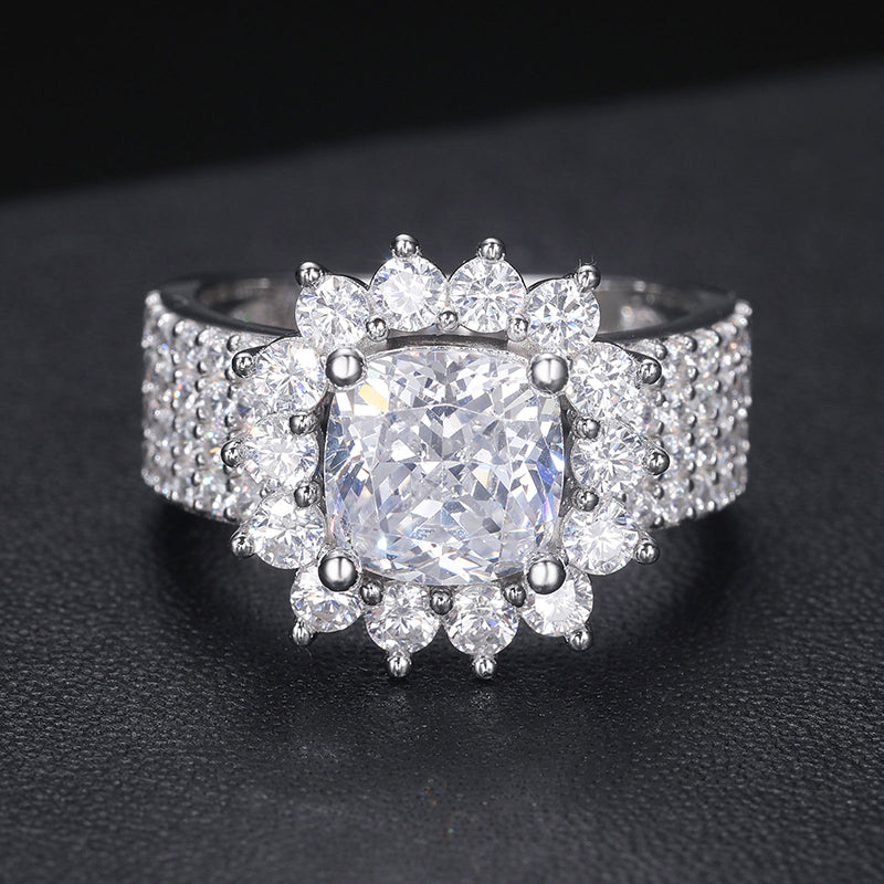 CUSHION CUT MOISSANITE FLOWER RING IN STERLING SILVER