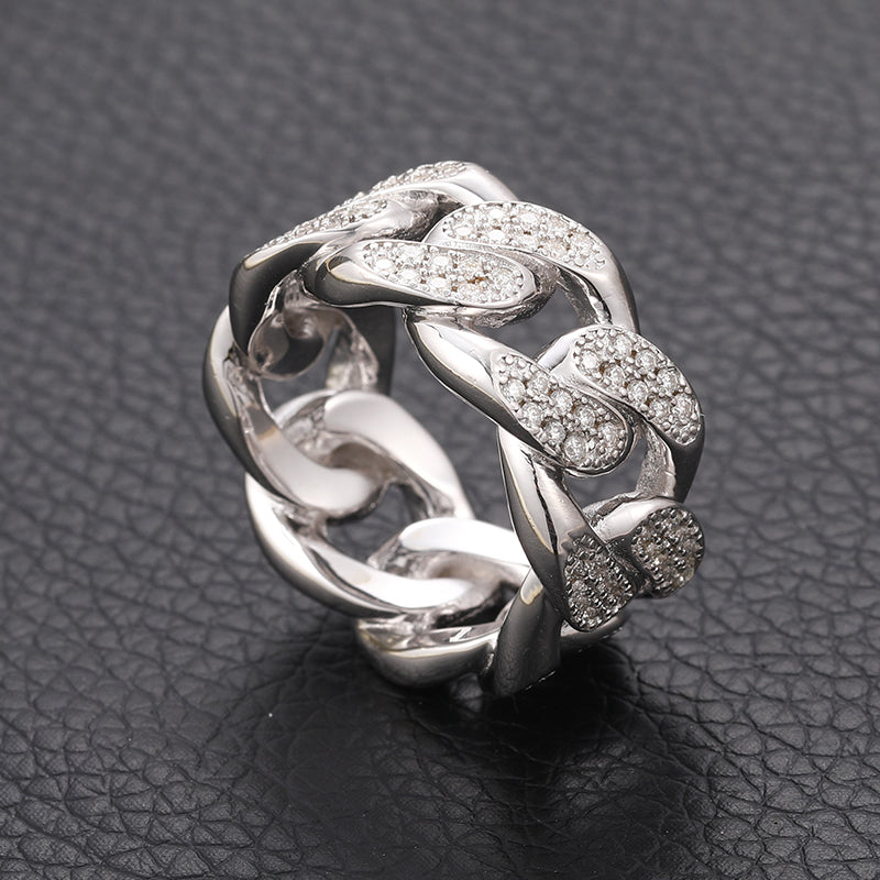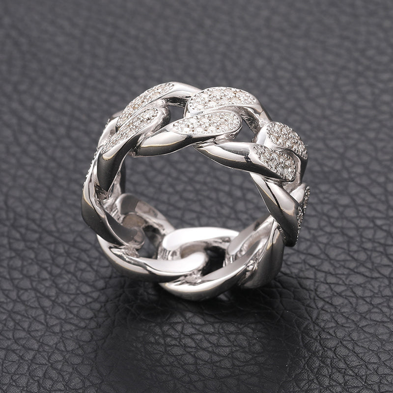 IE0064 MOISSANITE DIAMOND TWISTED CUBAN RING IN STERLING SILVER