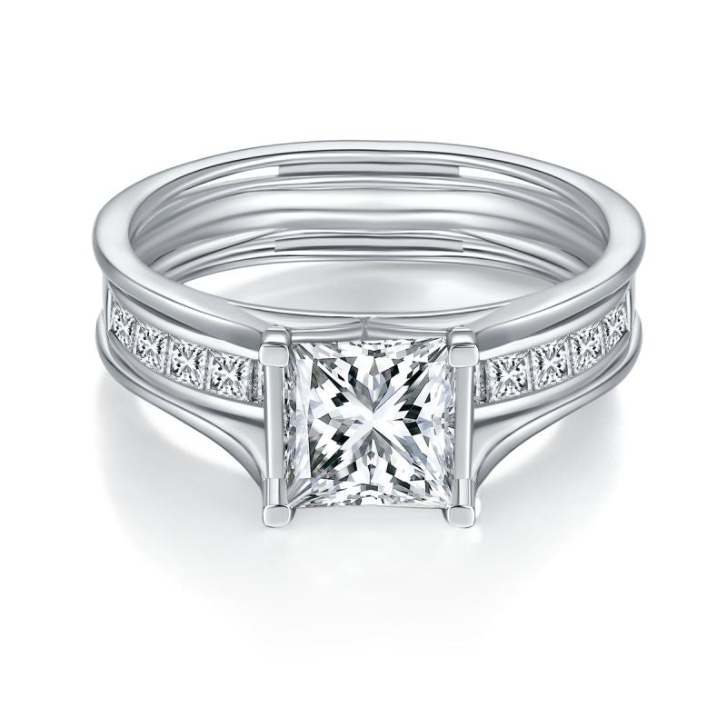 IE0174 PRINCESS CUT MOISSANITE RING IN STERLING SILVER