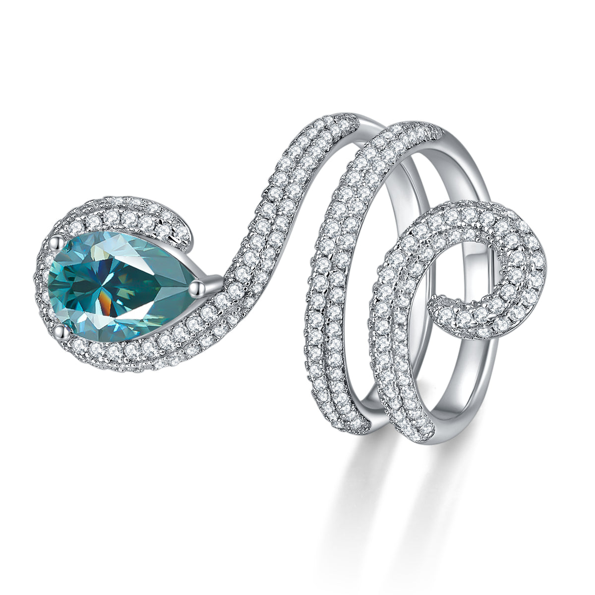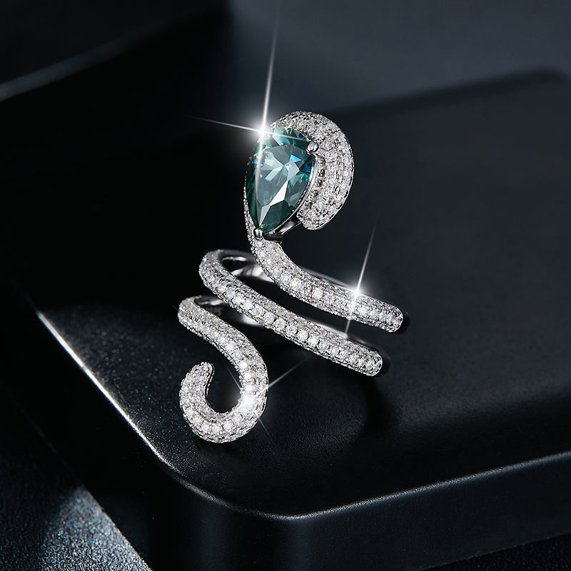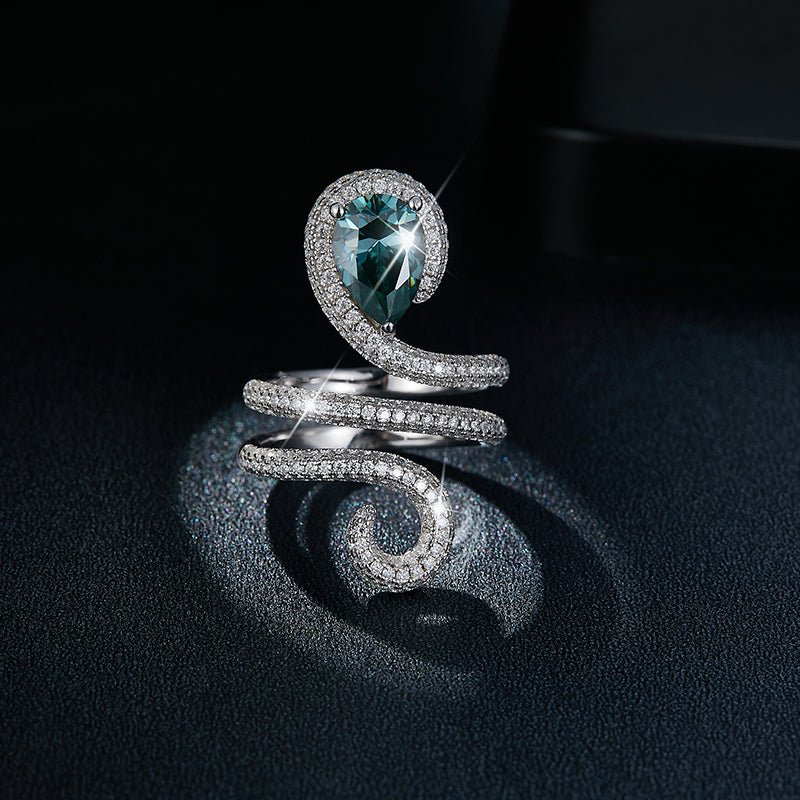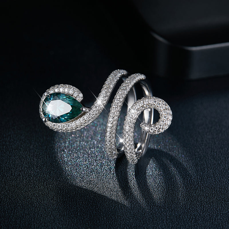 IE0247 WATER DROP ICE BLUE MOISSANITE RING IN STERLING SILVER