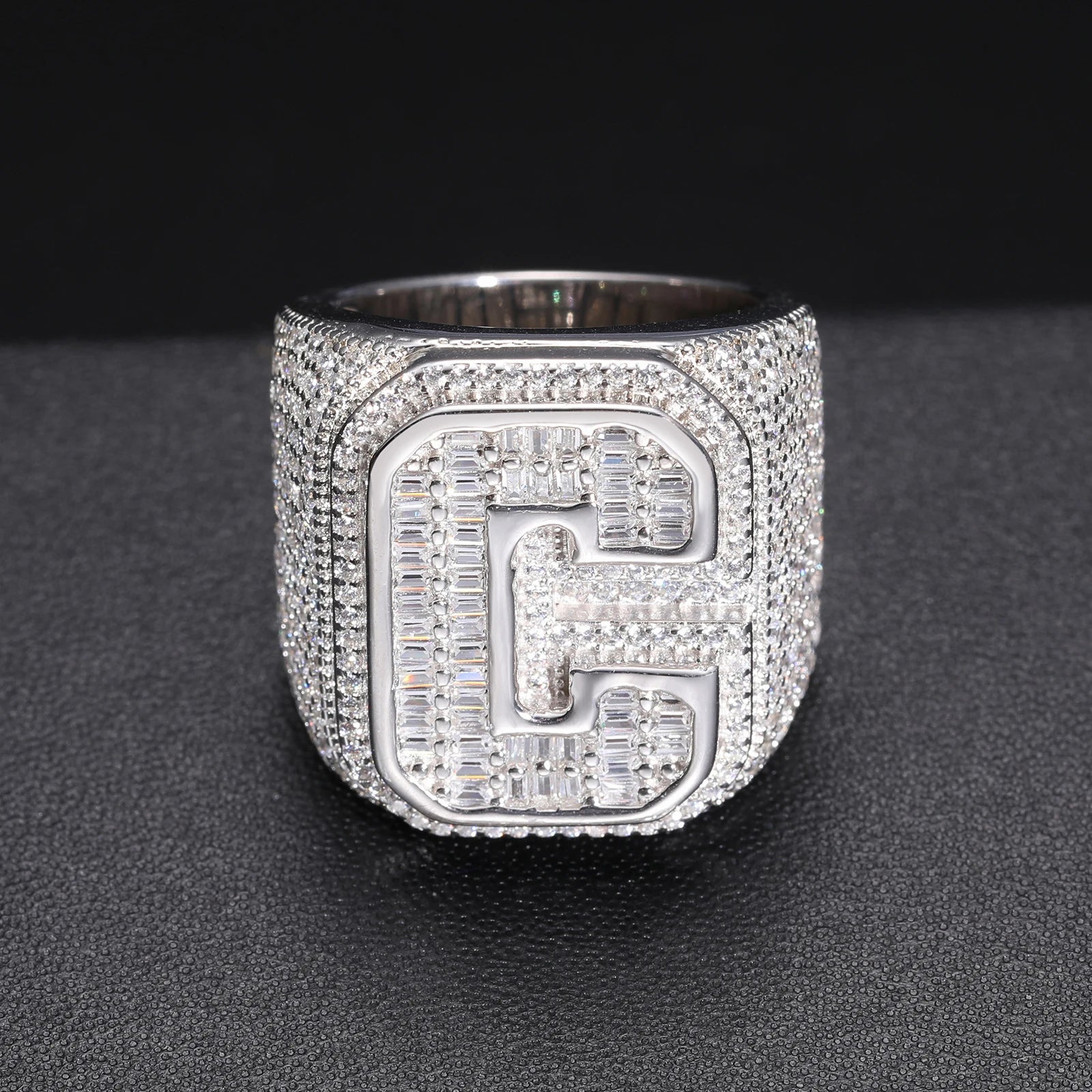 INITIAL MOISSANITE RING IN STERLING SILVER: A personalized statement crafted in polished sterling silver, featuring a custom initial set with brilliant moissanite stones. Designed to sparkle from every angle, this ring blends personal meaning with modern elegance. Durable and comfortable for daily wear, it’s perfect as a signature piece or a thoughtful gift. A timeless way to wear your identity with subtle luxury and standout shine. ✨