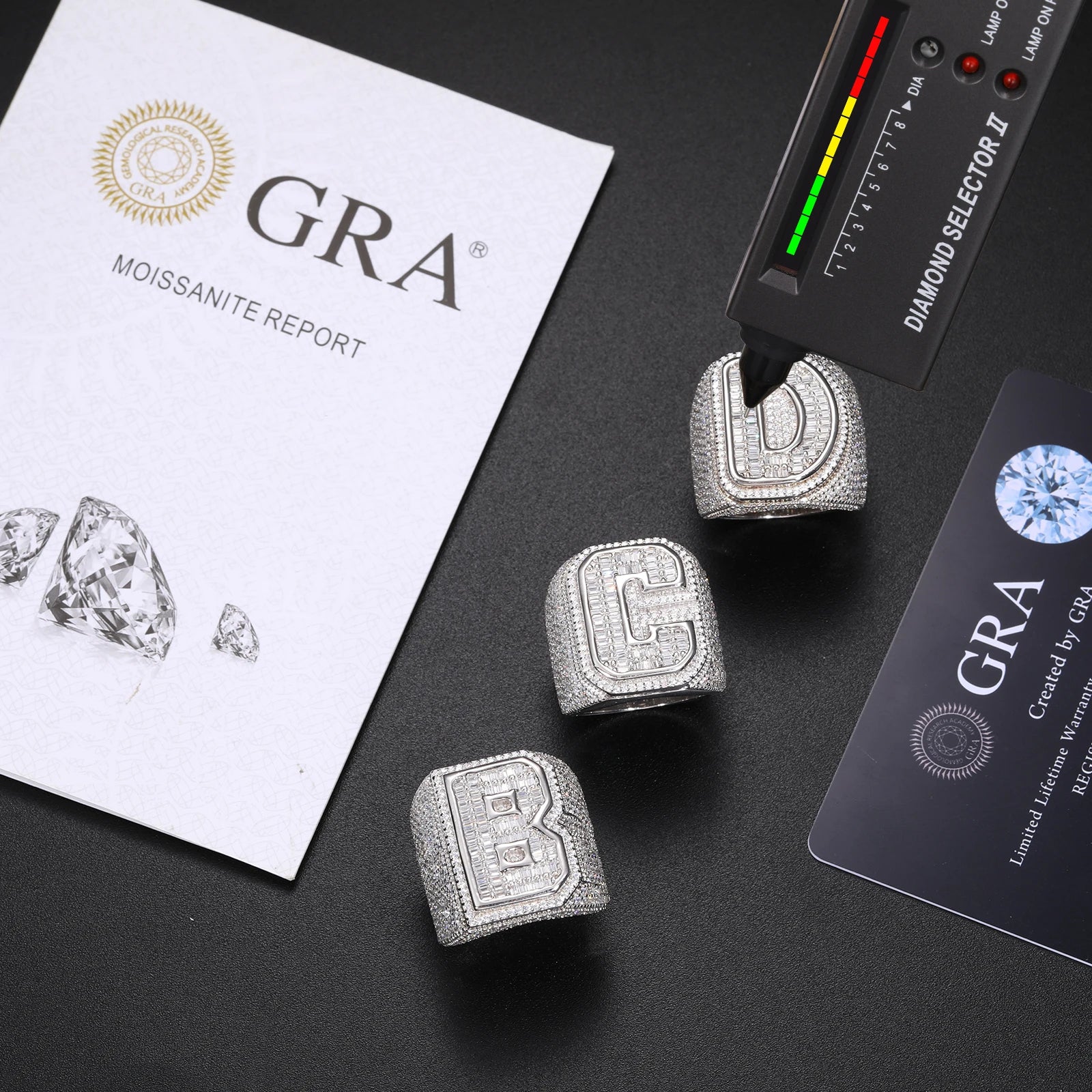 INITIAL MOISSANITE RING IN STERLING SILVER