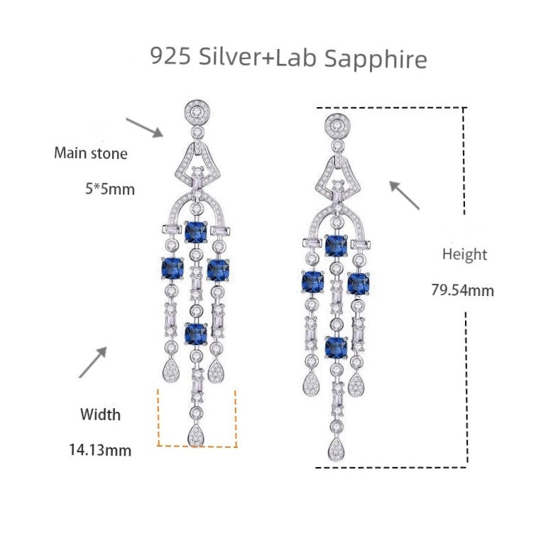 Lab Grown Sapphire Azure Cascade Earrings in Sterling Silver: Designed to capture movement and light, these earrings feature a graceful cascade of lab-grown sapphires, shimmering with a rich azure hue. Set in polished sterling silver, their fluid design evokes elegance and modern charm, making them a perfect choice for evening glam or refined everyday wear. A true expression of sophistication and timeless allure. 💙✨