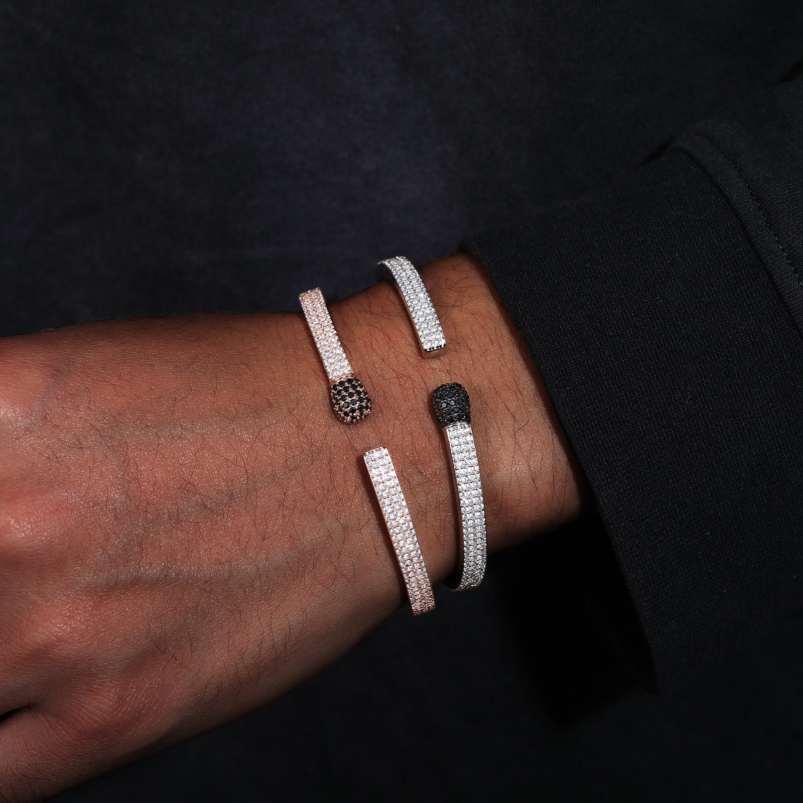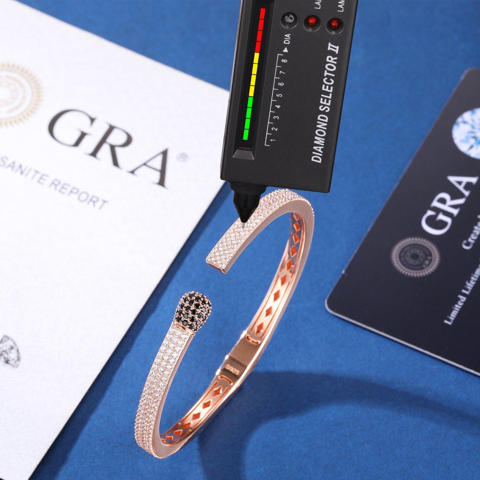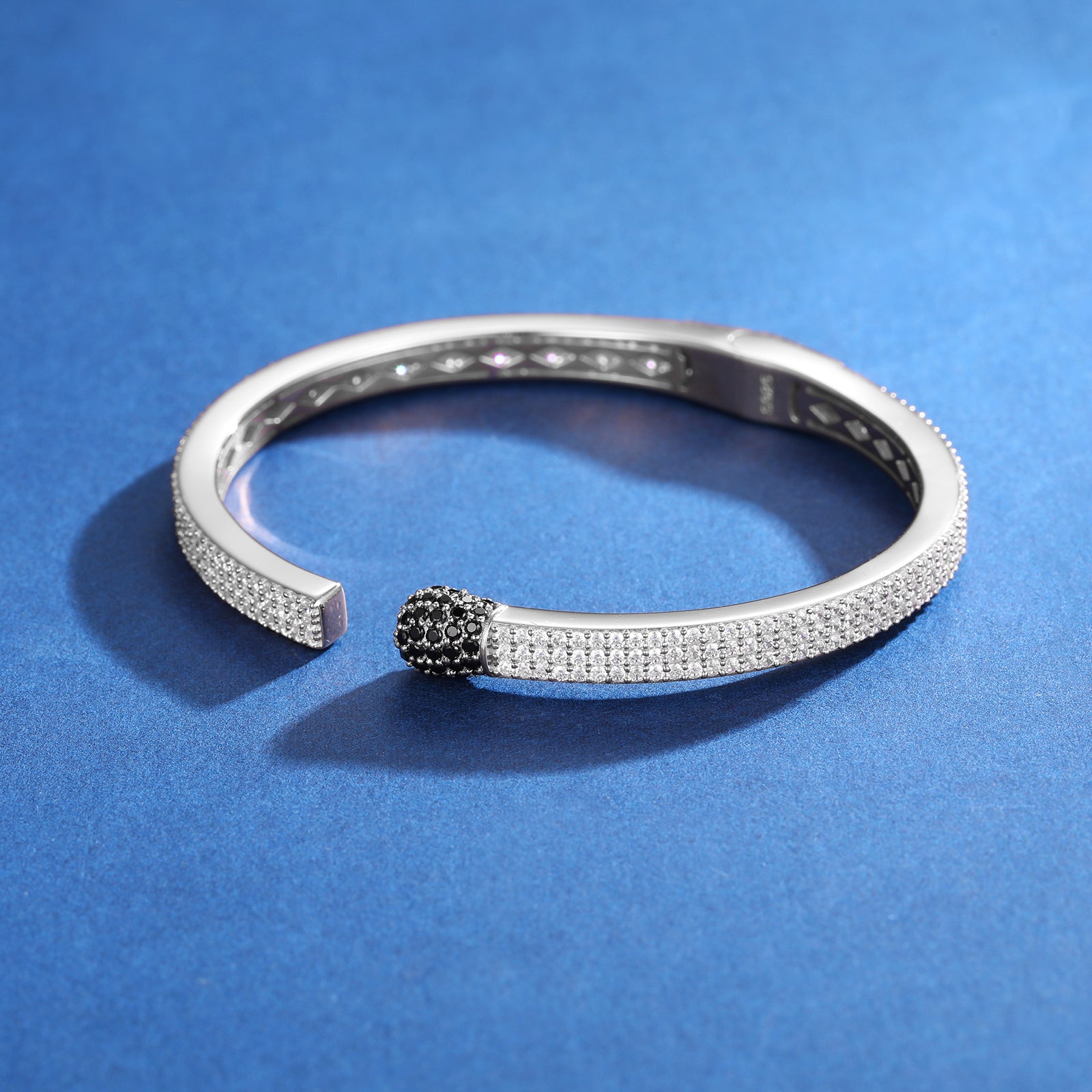 MOISSANITE BLACK FLAME CUFF BANGLE BRACELET IN STERLING SILVER