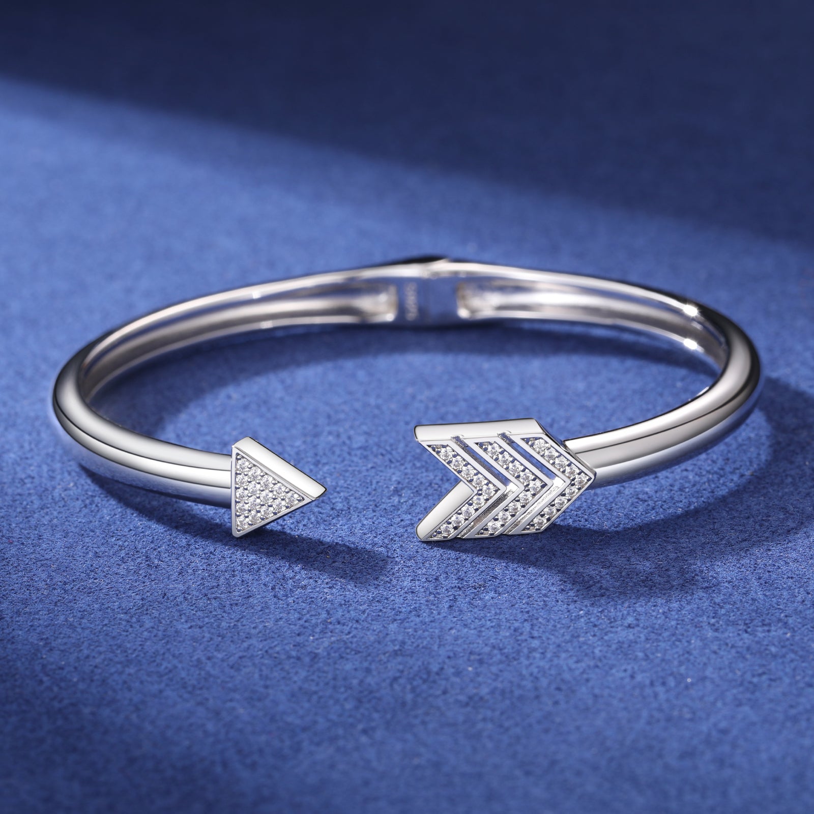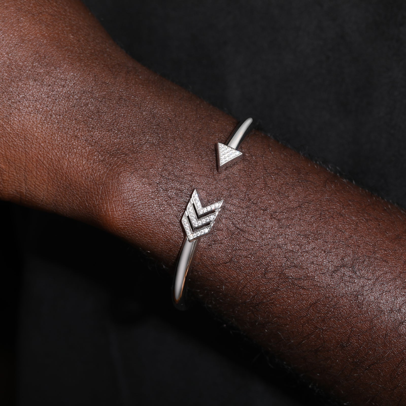 MOISSANITE DIAMOND ARROW BANGLE IN STERLING SILVER