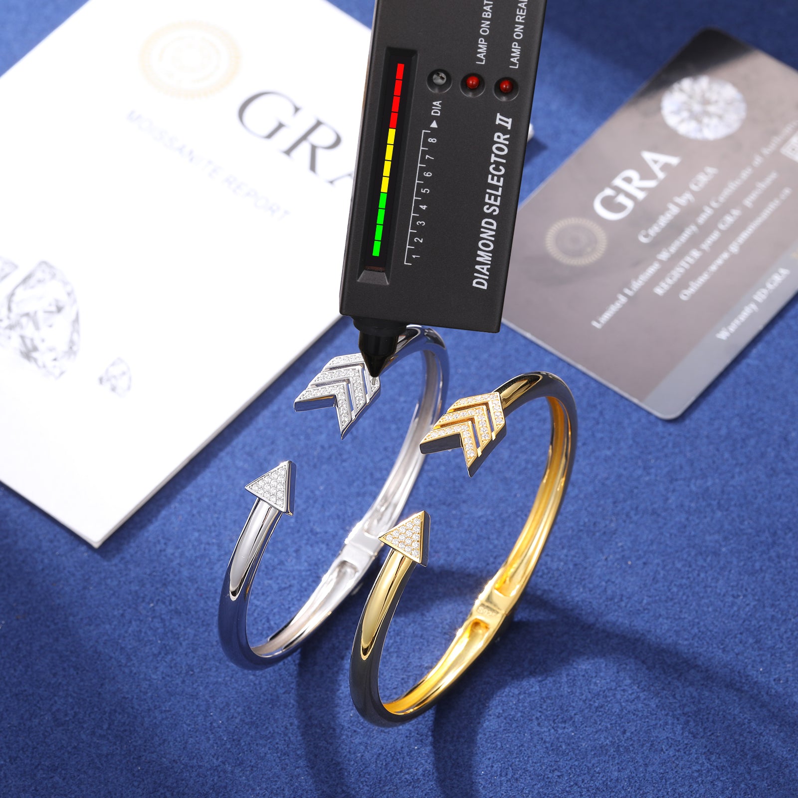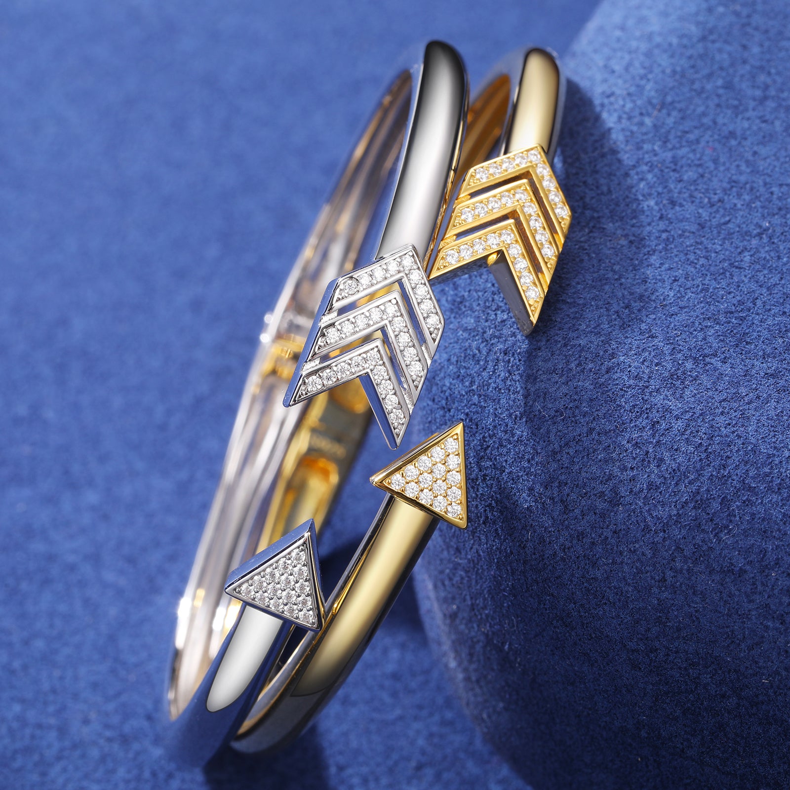 Discover refined elegance with our Moissanite Diamond Arrow Bangle in Sterling Silver. This exquisite piece showcases a striking arrow design, adorned with brilliant Moissanite diamonds, symbolizing direction and purpose. Crafted from premium 925 Sterling Silver, this bangle offers both durability and a luxurious finish. Perfect for both everyday wear and special occasions, it adds a touch of sophistication and sparkle to any outfit. Elevate your jewelry collection with this timeless, versatile piece.