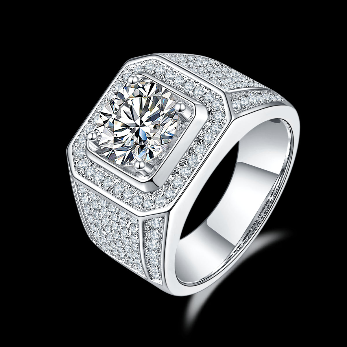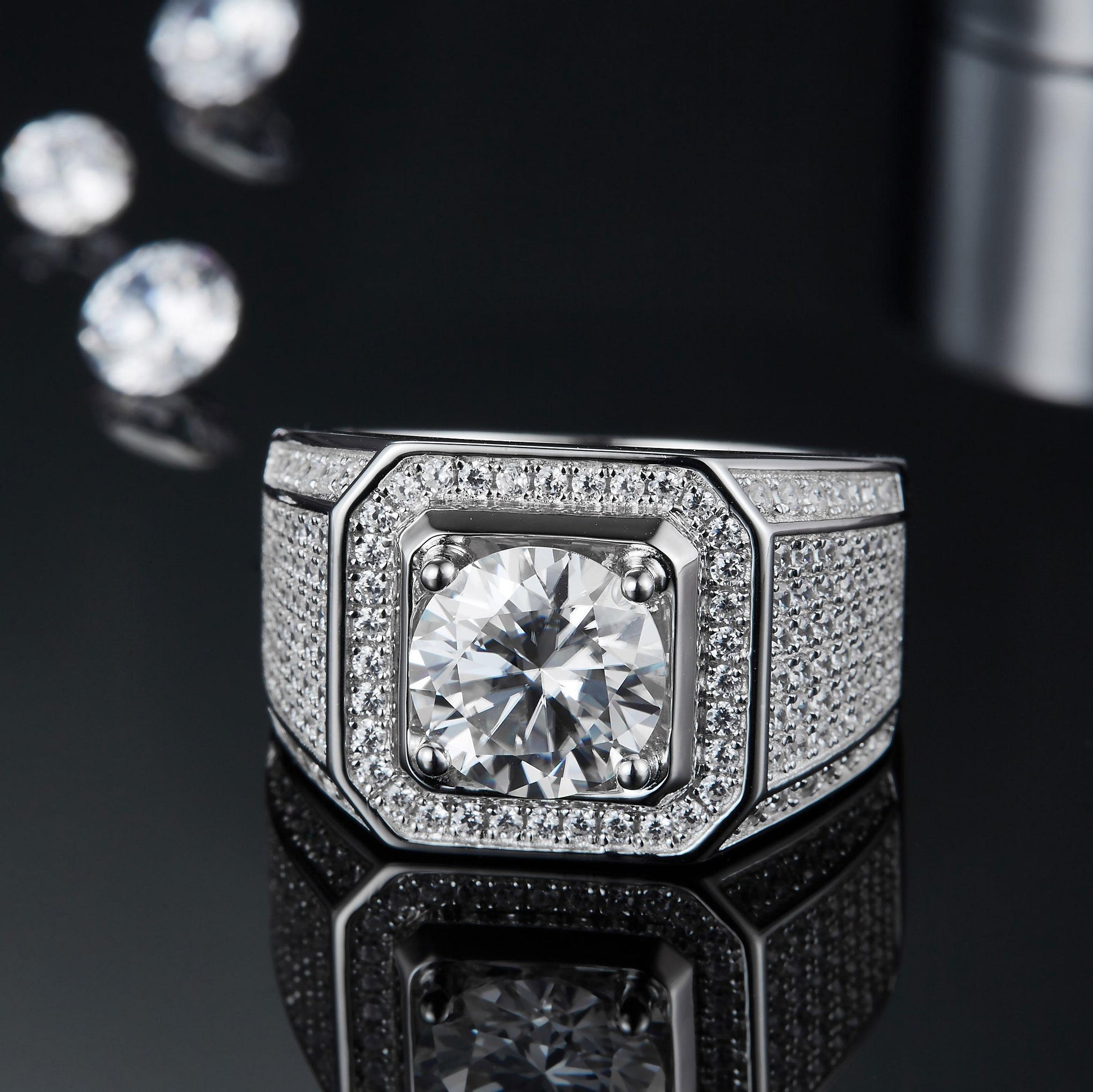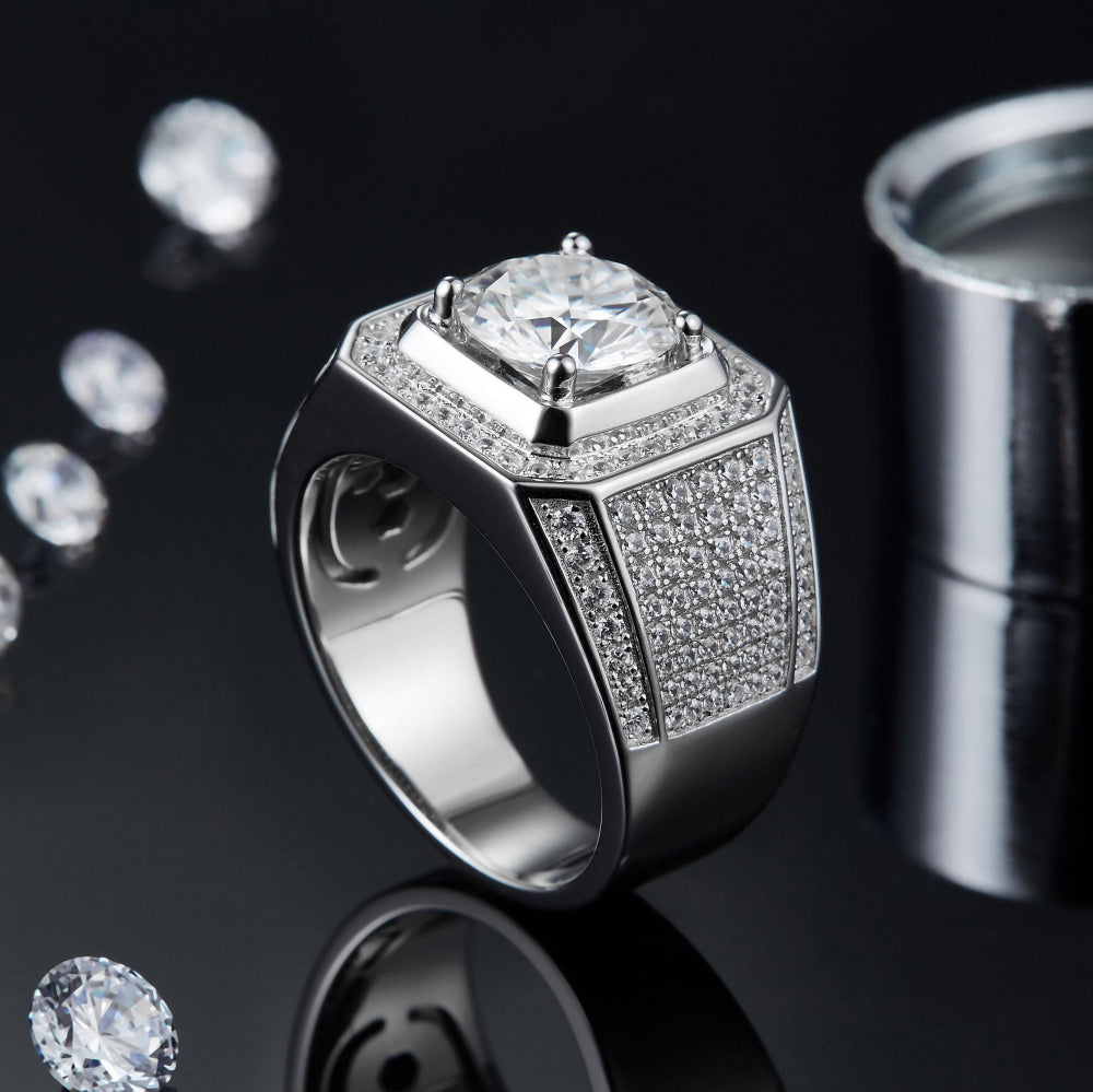 MOISSANITE DIAMOND BAND RING IN STERLING SILVER FOR MEN