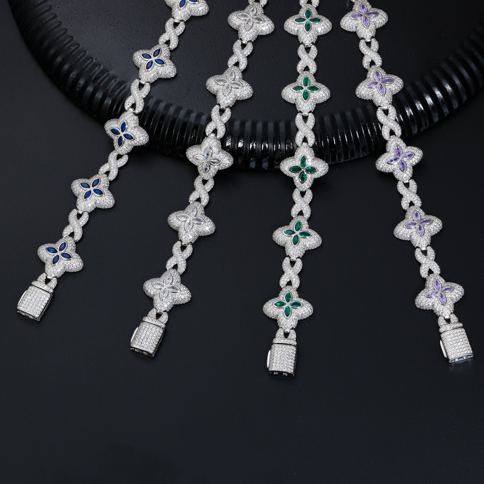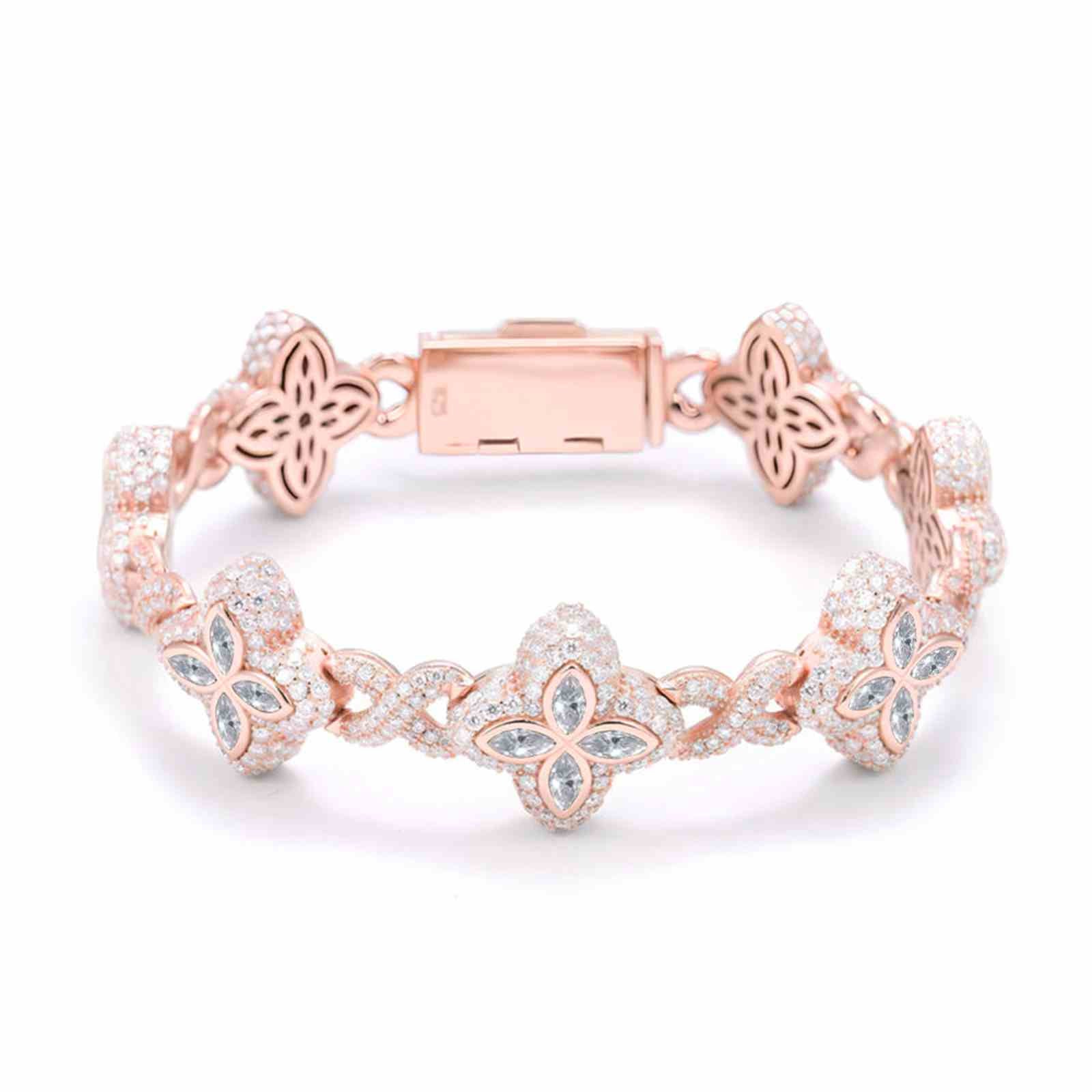 MOISSANITE DIAMOND FOUR LEAF CLOVER INFINITY LINK BRACELET IN STERLING SILVER