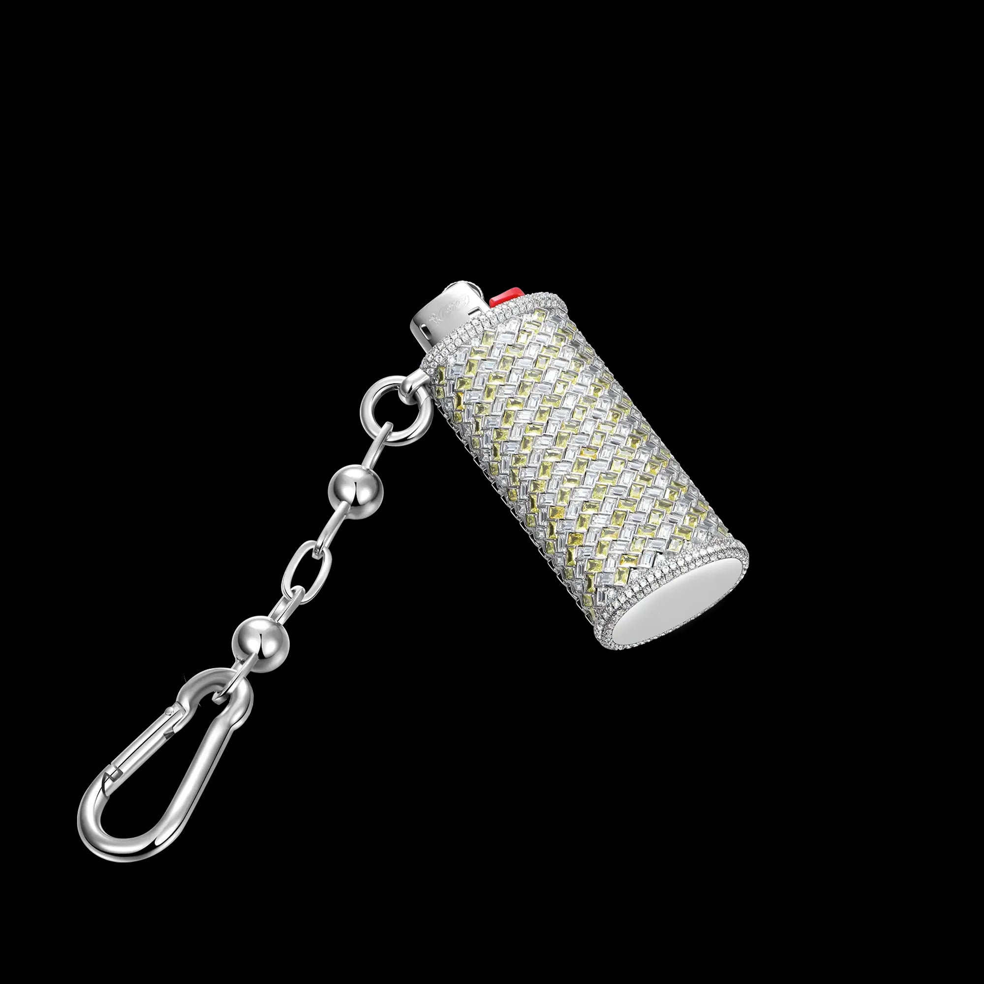 MOISSANITE DIAMOND GOLDEN WEAVE LIGHTER CASE IN STERLING SILVER