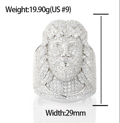 MOISSANITE DIAMOND JESUS RING IN STERLING SILVER