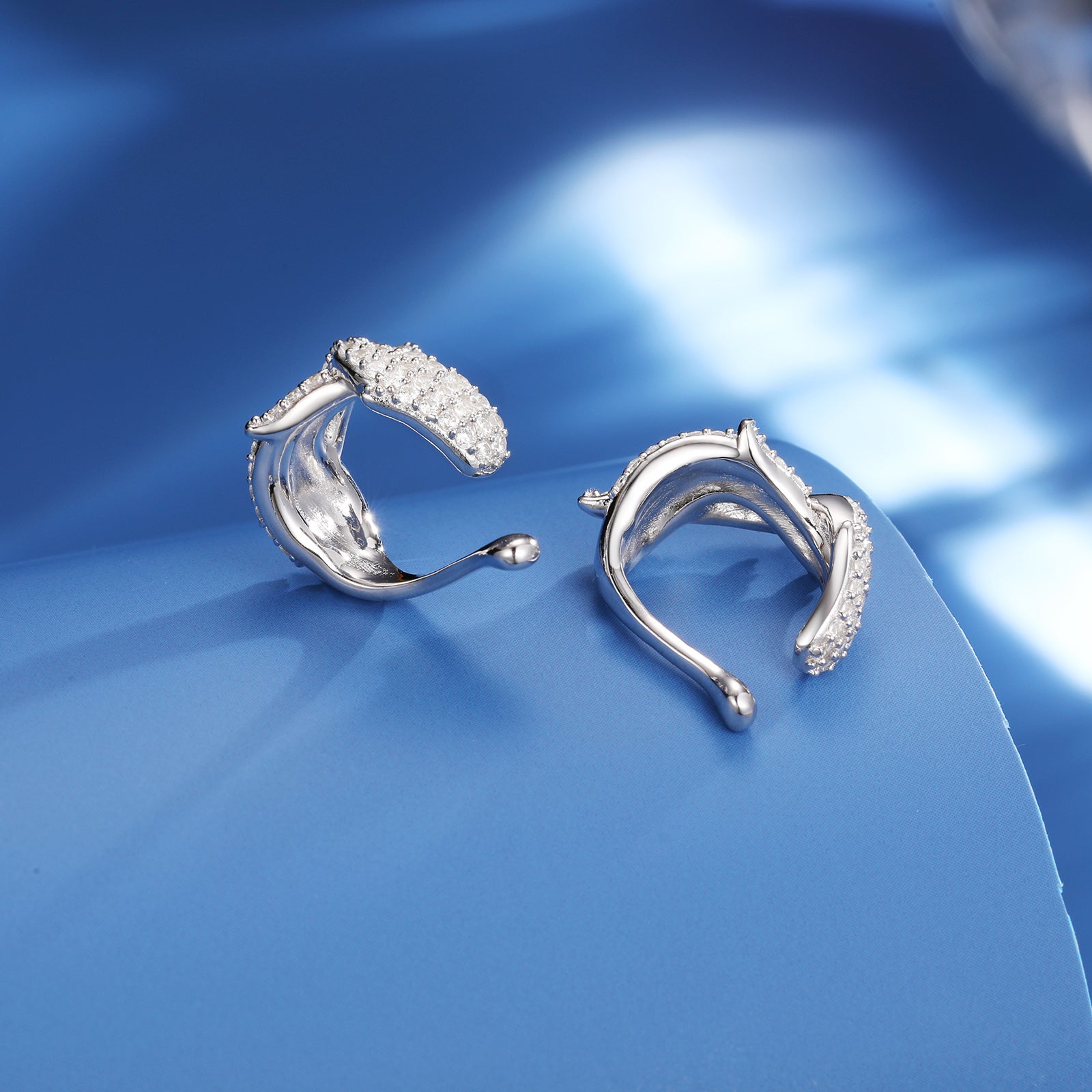 MOISSANITE DIAMOND THORNS CLIP-ON EAR CUFF EARRINGS IN STERLING SILVER