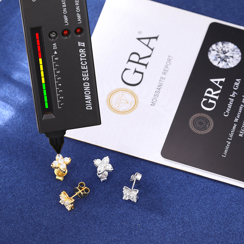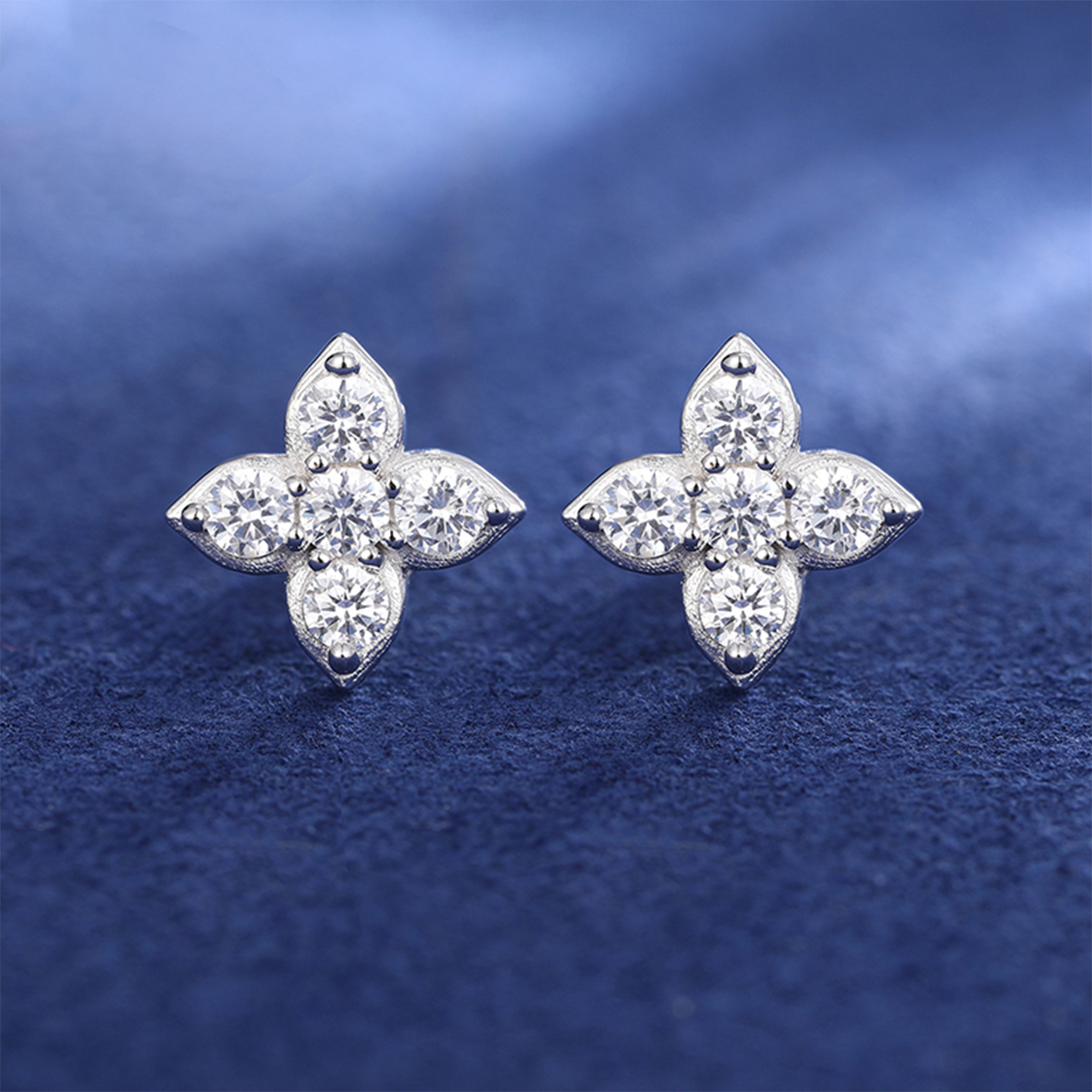 MOISSANITE FOUR LEAF CLOVER STUD EARRINGS IN STERLING SILVER STYLE 2