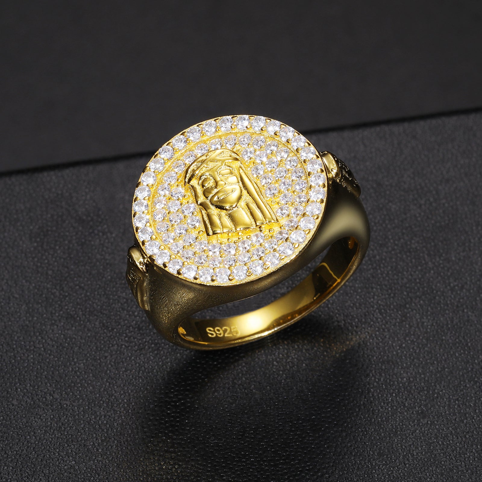 MOISSANITE JESUS SIGNET RING IN STERLING SILVER