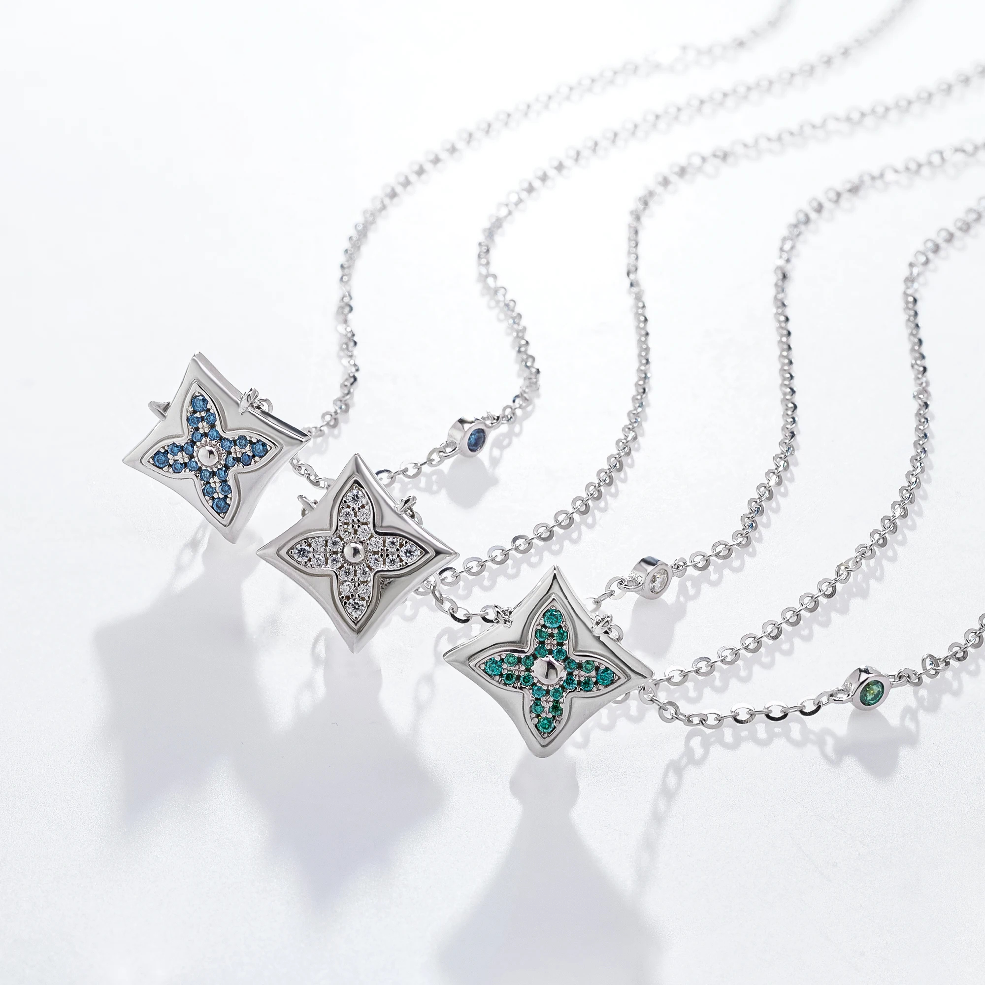 MOISSANITE LUCKY FOUR LEAF CLOVER NECKLACE IN STERLING SILVER