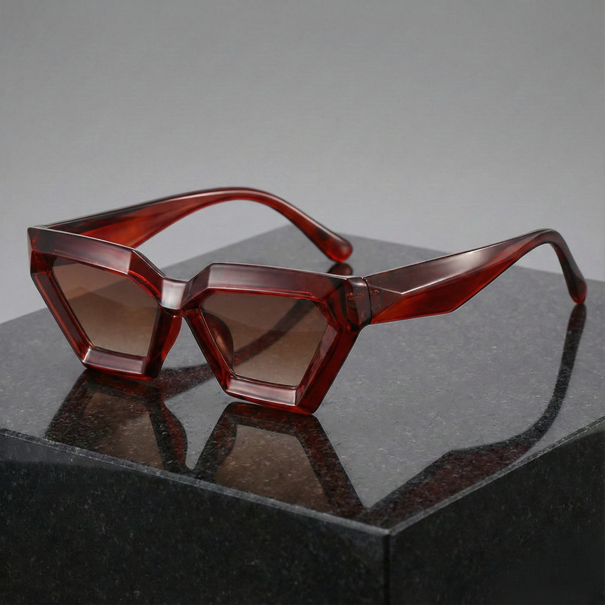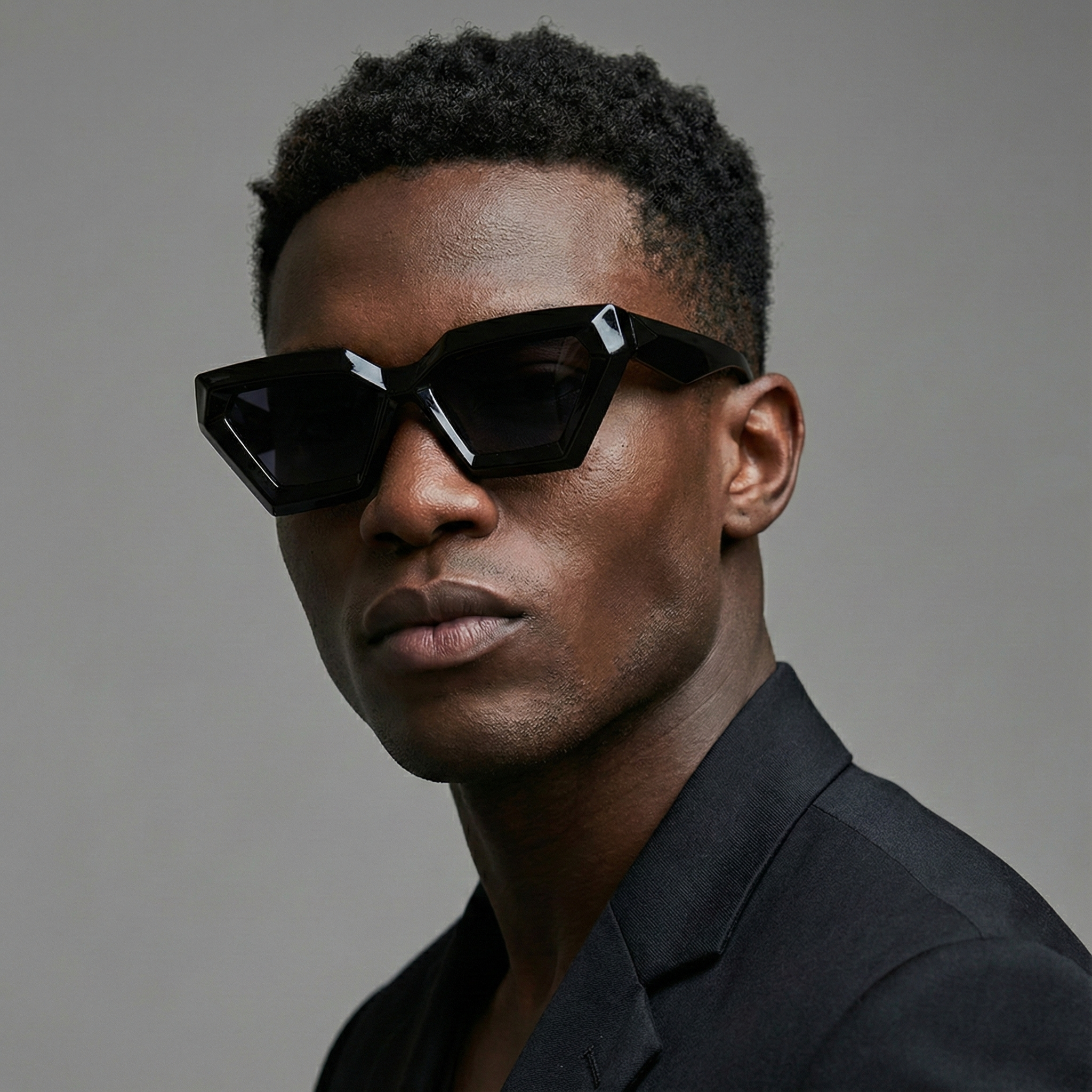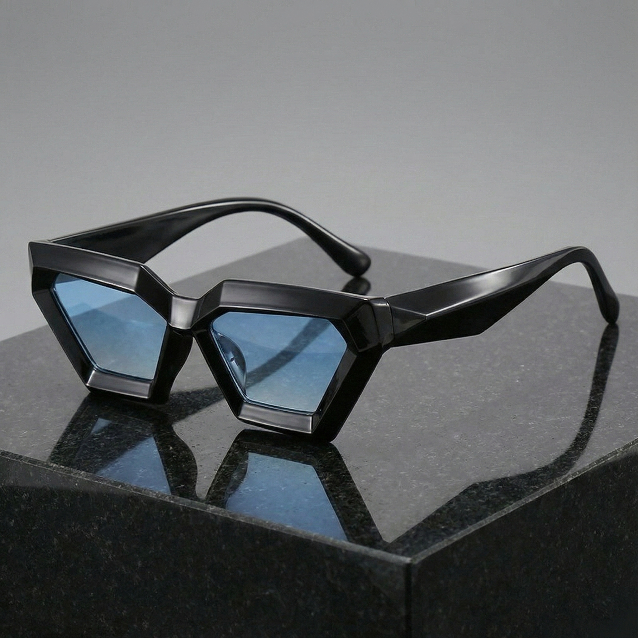 NOCTYRA cat-eye sunglasses are a bold expression of modern glamour with a dark, sculptural edge. Defined by sharp geometric lines and a striking cat-eye silhouette, NOCTYRA blends avant-garde design with timeless confidence. The angular frame creates a powerful visual statement, elevating both minimal looks and high-fashion styling.