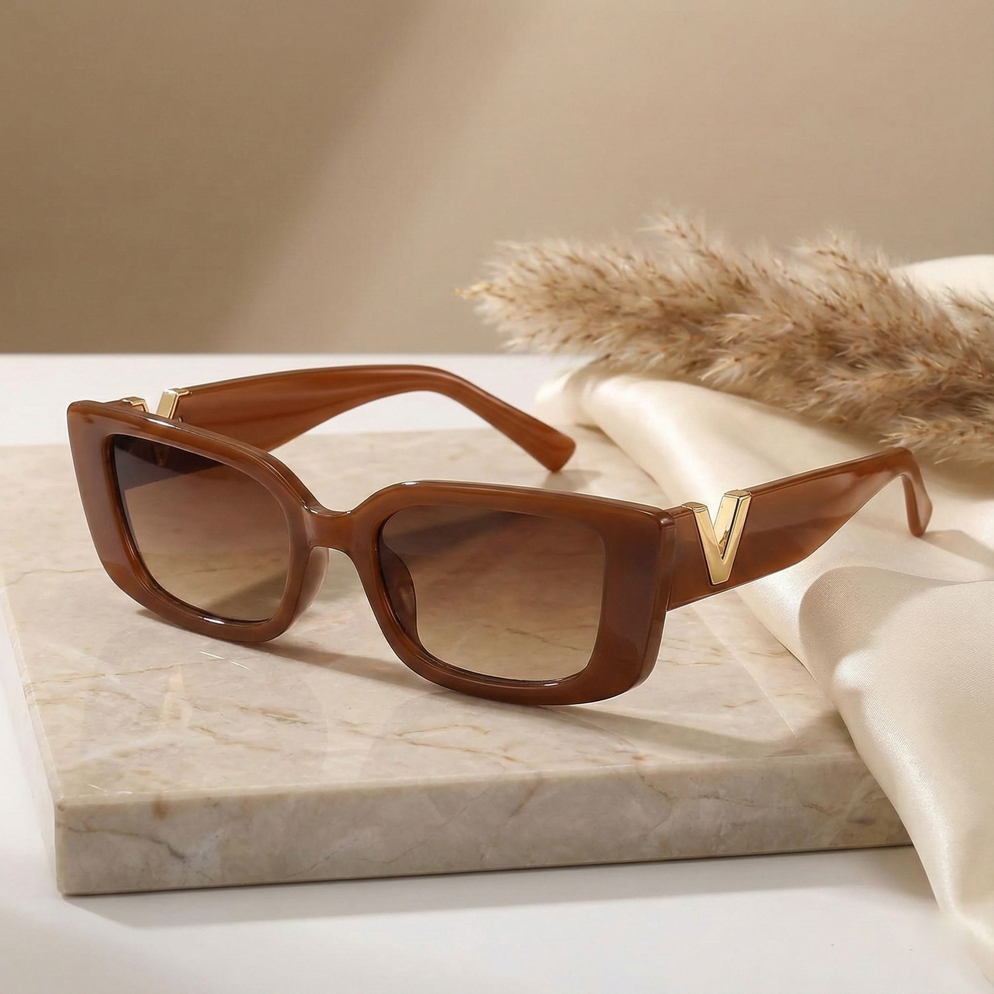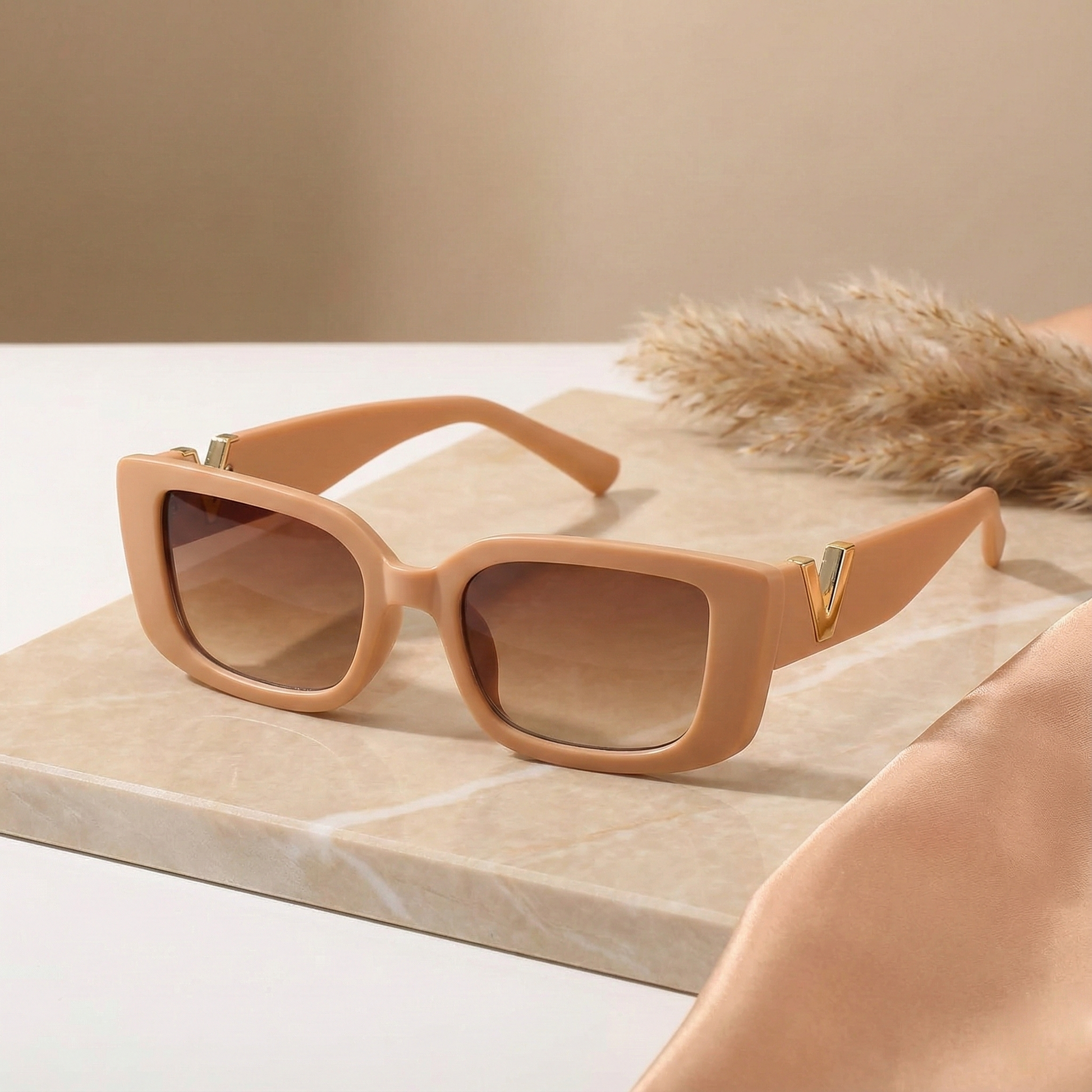 VALENCE retro vintage sunglasses reinterpret classic silhouettes through a modern luxury lens. Featuring a bold rectangular frame, softly sculpted edges, and refined gold-tone detailing, VALENCE delivers timeless elegance with contemporary polish. Inspired by vintage fashion eras yet designed for today, these sunglasses strike the perfect balance between nostalgia and sophistication.