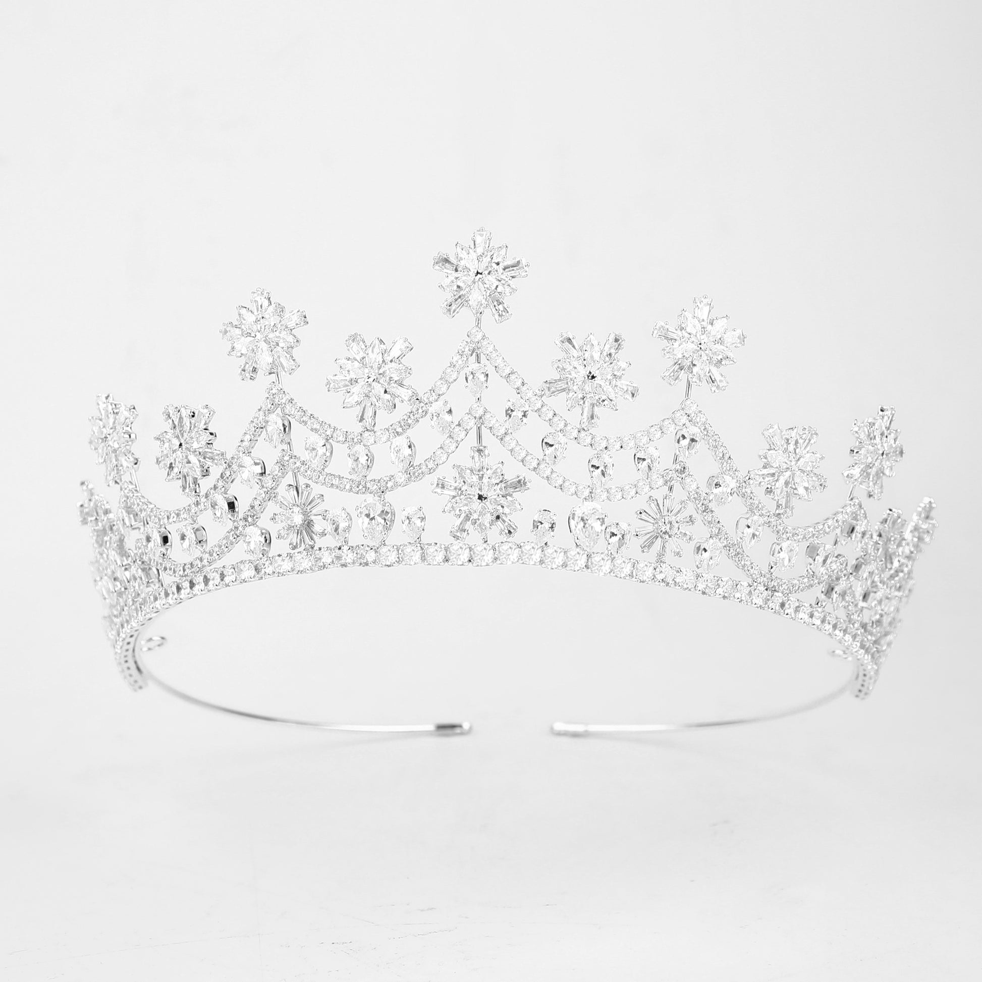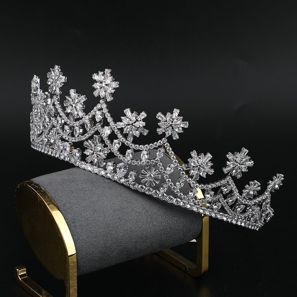 The Frosted Serenity Tiara Crown is a captivating masterpiece, encrusted with 5A+ cubic zirconia for an enchanting sparkle. Perfect for pageants, bridal events, or any important occasion, this tiara ensures you shine with grace and elegance. Its intricate design and brilliant stones make it the ultimate accessory for those looking to dazzle and make unforgettable memories. 💫👰♀️