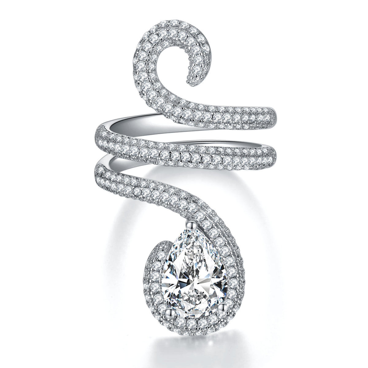 IE0247 2C PEAR CUT PYTHON LOOP MOISSANITE DIAMOND RING IN STERLING SILVER