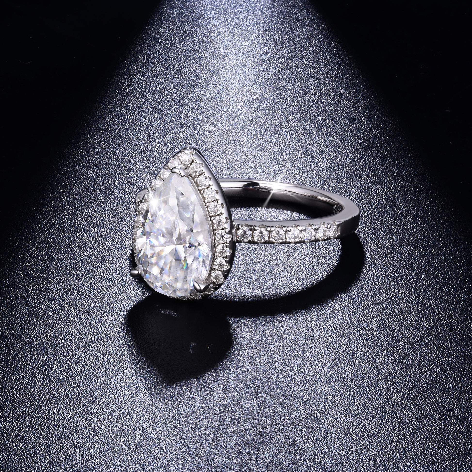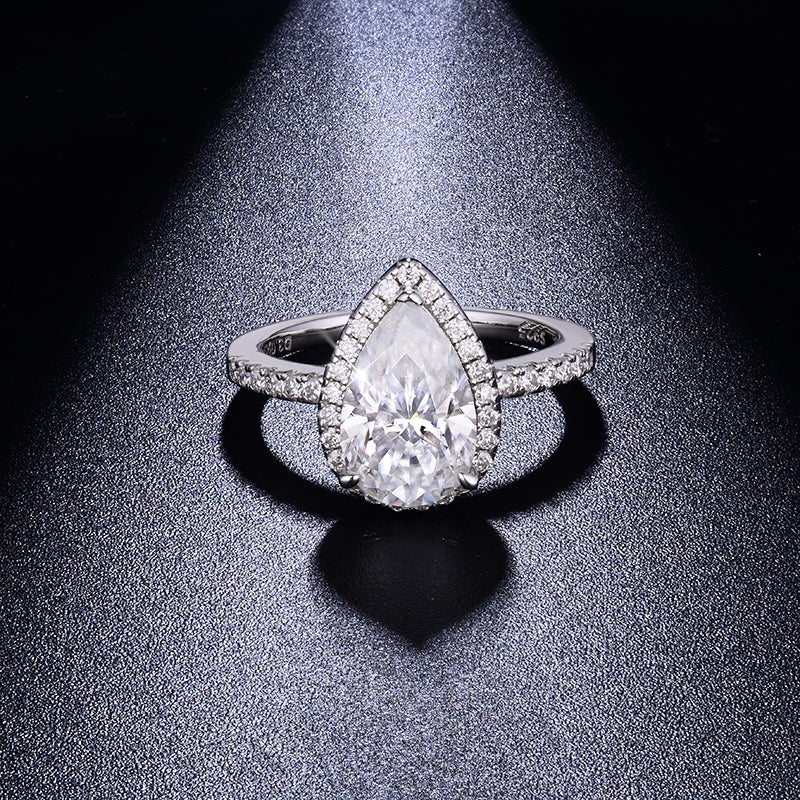 IE0290 PEAR CUT MOISSANITE DIAMOND RING IN STERLING SILVER