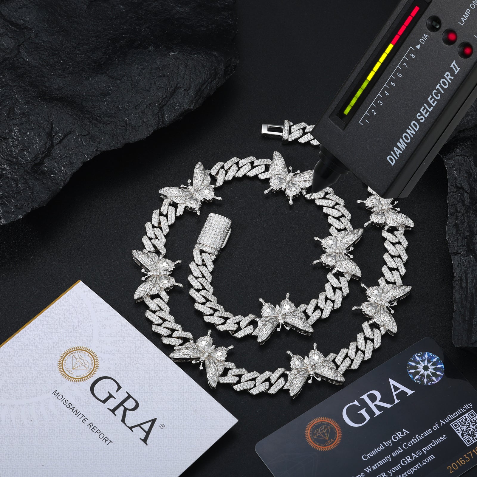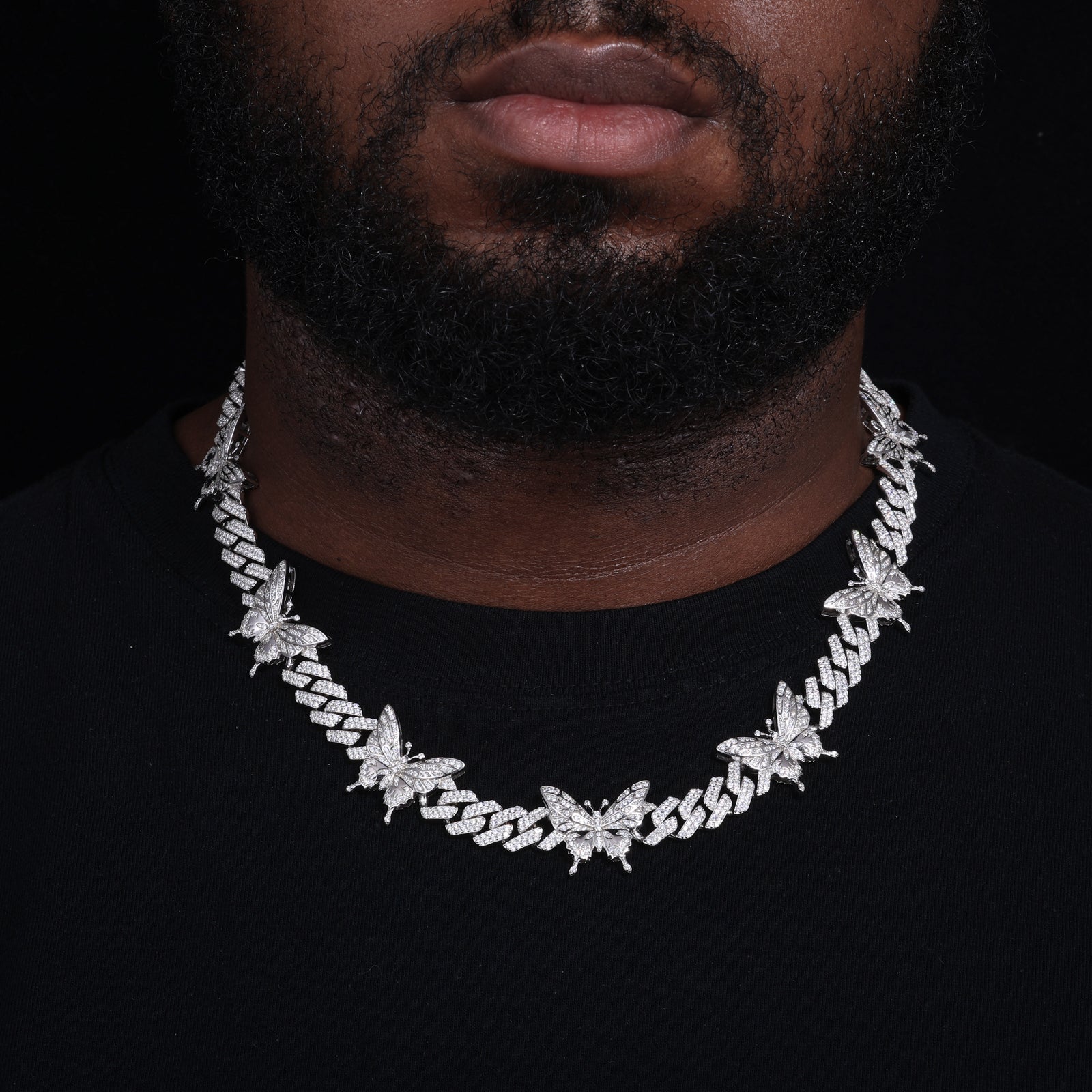Moissanite Butterfly Cuban Link Chain in Sterling Silver: A dazzling fusion of elegance and edge, this Cuban link chain is adorned with shimmering moissanite butterflies, adding a unique, eye-catching touch. Perfect for making a bold yet graceful statement. 🦋💎