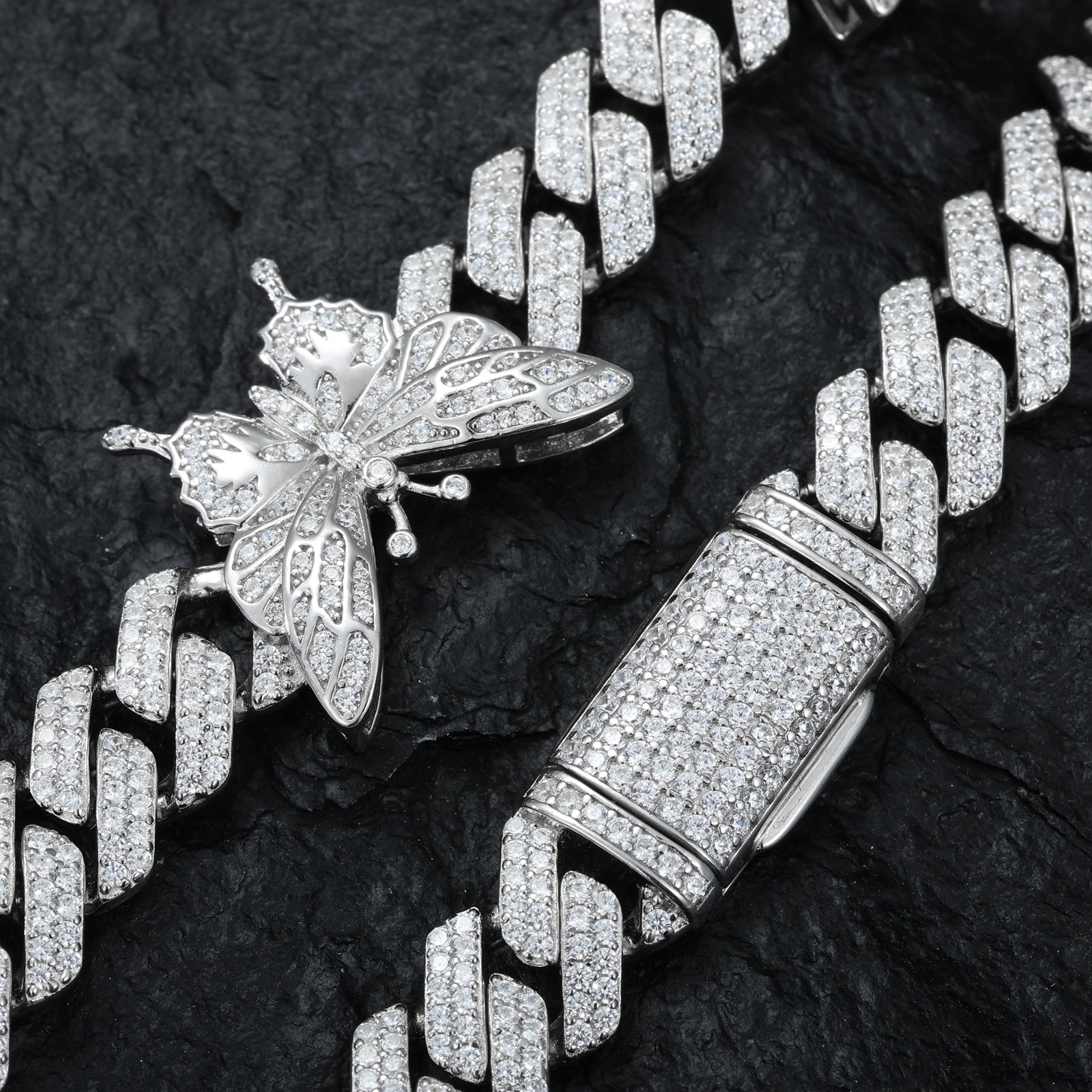 MOISSANITE BUTTERFLY CUBAN LINK CHAIN IN STERLING SILVER