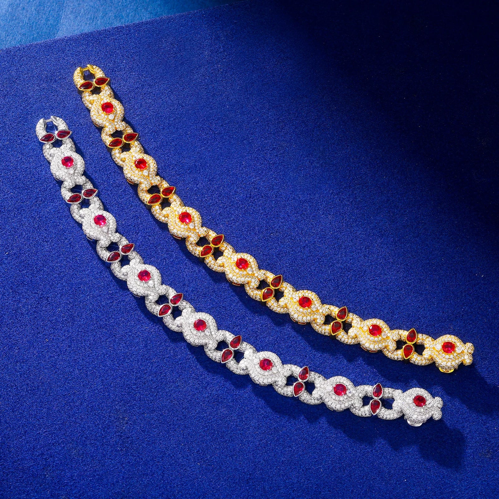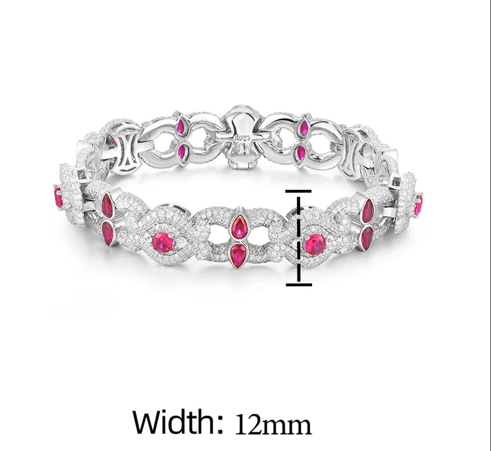 Moissanite Diamond Crimson Halo Evil Eye Bracelet in Sterling Silver: is designed to combine powerful symbolism with refined luxury. Crafted from premium 925 sterling silver, this bracelet features brilliant moissanite diamonds arranged in a radiant halo design, delivering exceptional fire and clarity. Striking crimson center stones form the iconic evil eye motif, believed to offer protection while making a bold style statement. The polished silver finish enhances durability and everyday comfort, making this moissanite evil eye bracelet ideal for special occasions, evening wear, and meaningful gifting. A timeless piece that blends modern craftsmanship, symbolism, and high-end brilliance.