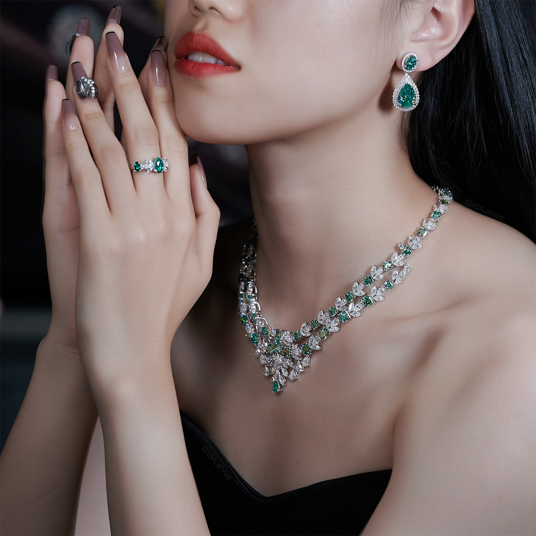 PEAR AND ASSCHER CUT MOISSANITE NECKLACE JEWELRY SET IN STERLING SILVER