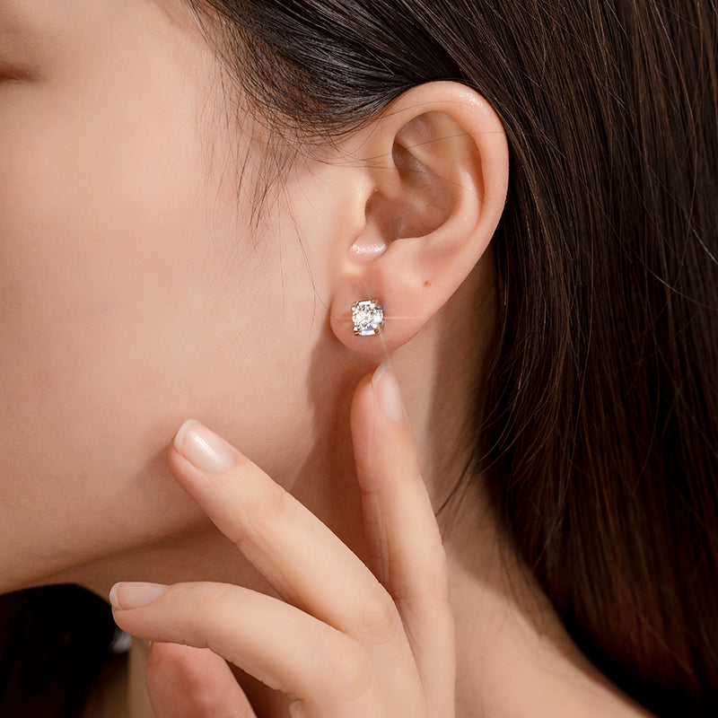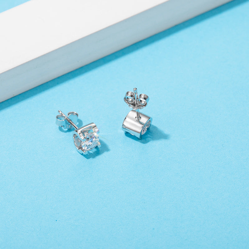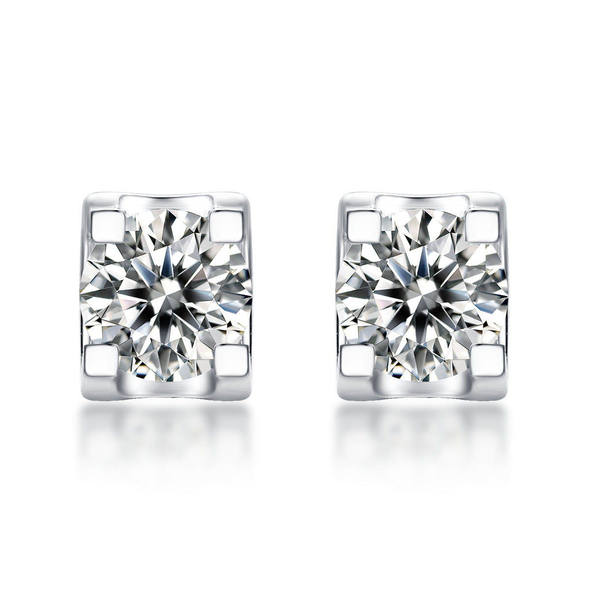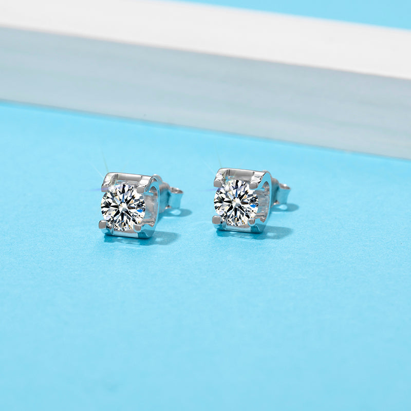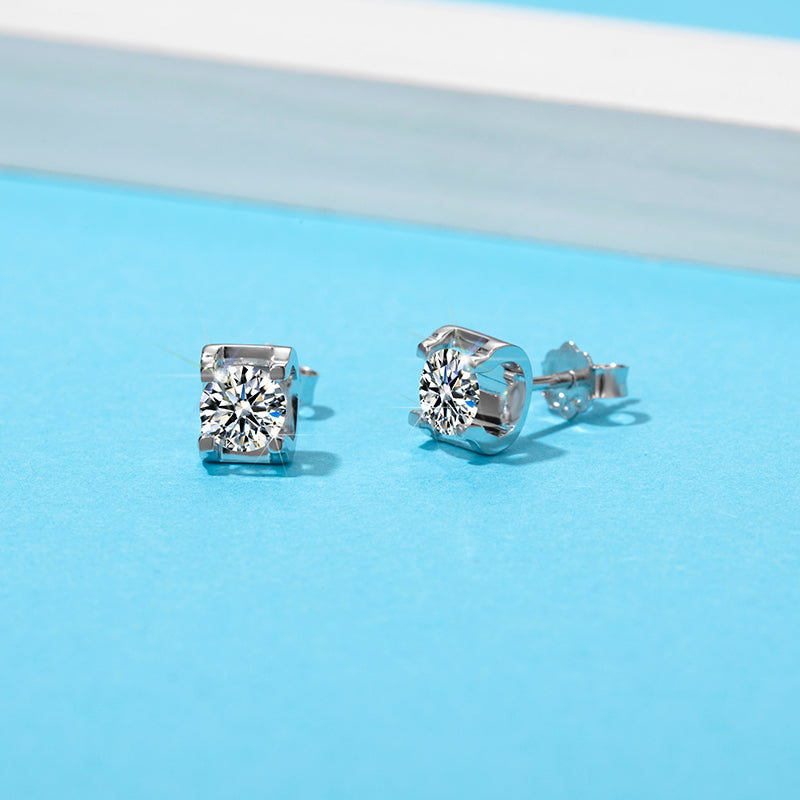 0.5CT SQUARE ENCASED ROUND MOISSANITE STUD EARRINGS IN STERLING SILVER