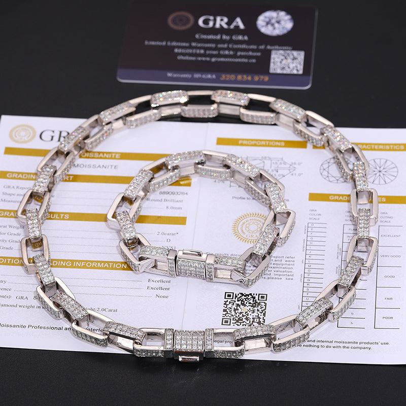 11MM MOISSANITE CUBAN BOX LINK CHAIN NECKLACE/BRACELET IN STERLING SILVER