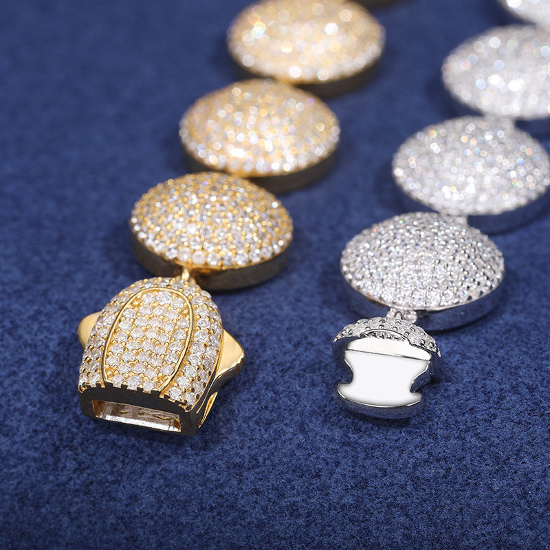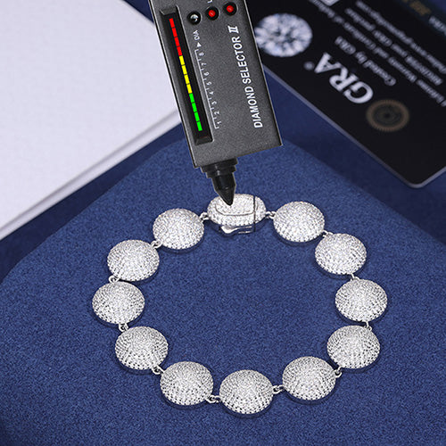 Introducing our 12mm Moissanite Pill Link Chain Bracelet in Sterling Silver. This bracelet features a bold and distinctive pill link design, adorned with brilliant moissanite stones. Crafted with precision in sterling silver, it offers a blend of modern style and timeless elegance. Perfect for those who appreciate unique and eye-catching jewelry, this bracelet is designed to make a statement. Ideal for both casual and formal wear, elevate your look with this stunning piece that sparkles with every movement. 💎✨