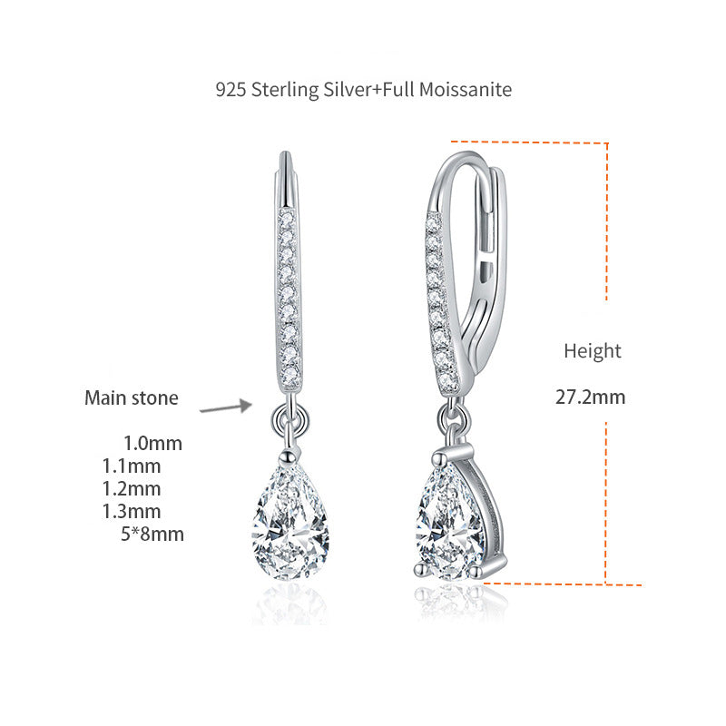 1CT WATER DROP MOISSANITE DIAMOND DANGLE DROP EARRINGS IN STERLING SILVER