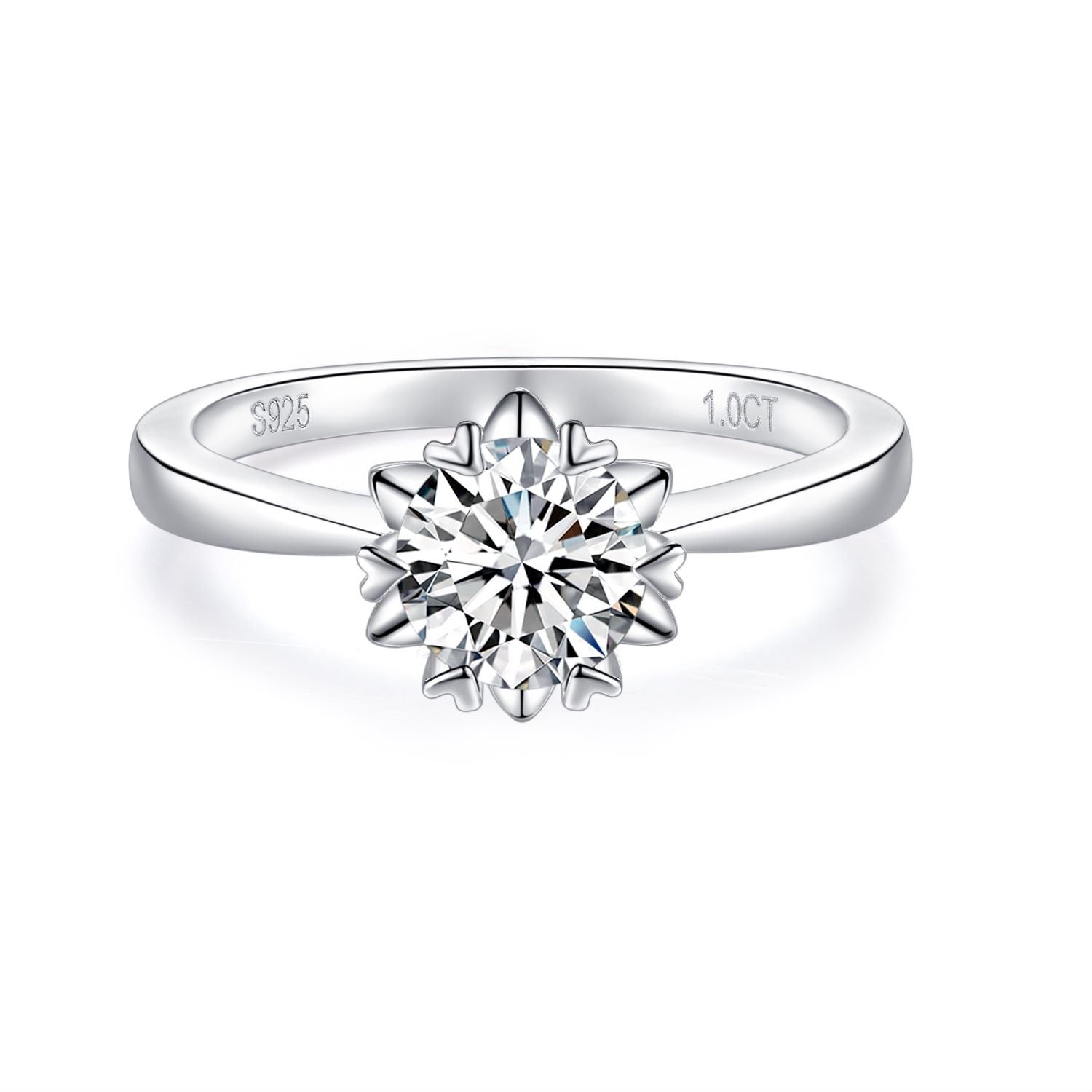 1CT ROUND CUT MOISSANITE RING IN STERLING SILVER {STYLE 2}