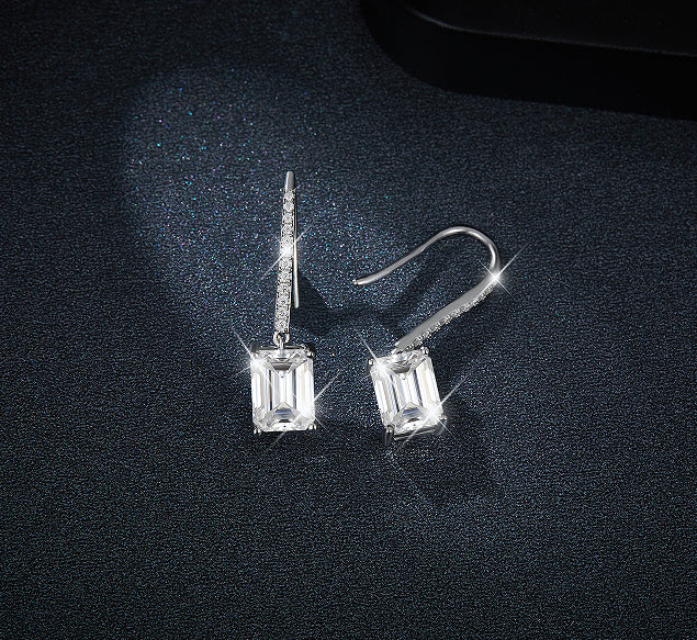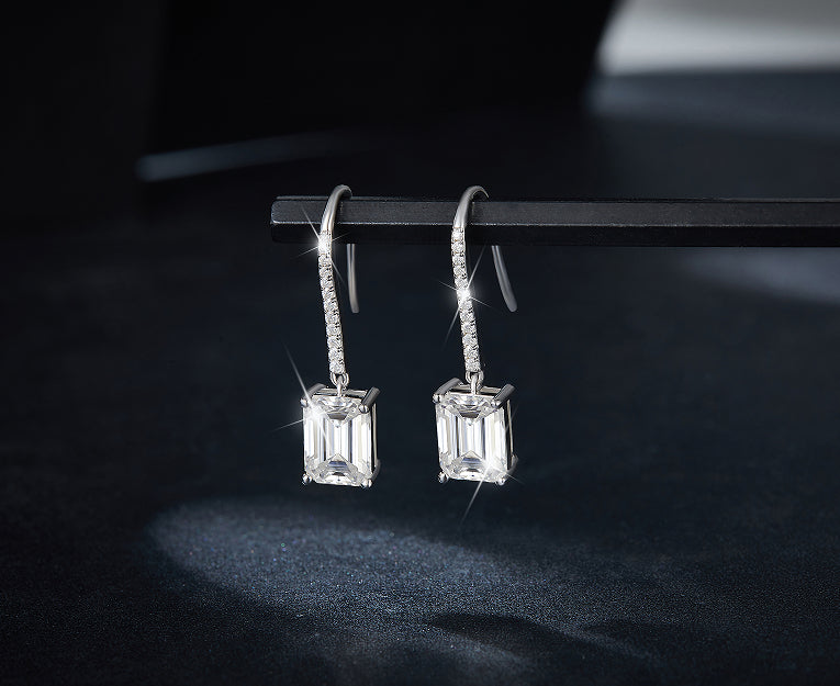 Elevate your elegance with our 2CT Moissanite Emerald Cut Drop Earrings, expertly crafted in sterling silver. These stunning earrings feature two dazzling 2-carat moissanite stones, cut in a sophisticated emerald shape, that gracefully dangle to catch the light with every move. Perfect for adding a touch of timeless luxury to any outfit. 💎💙