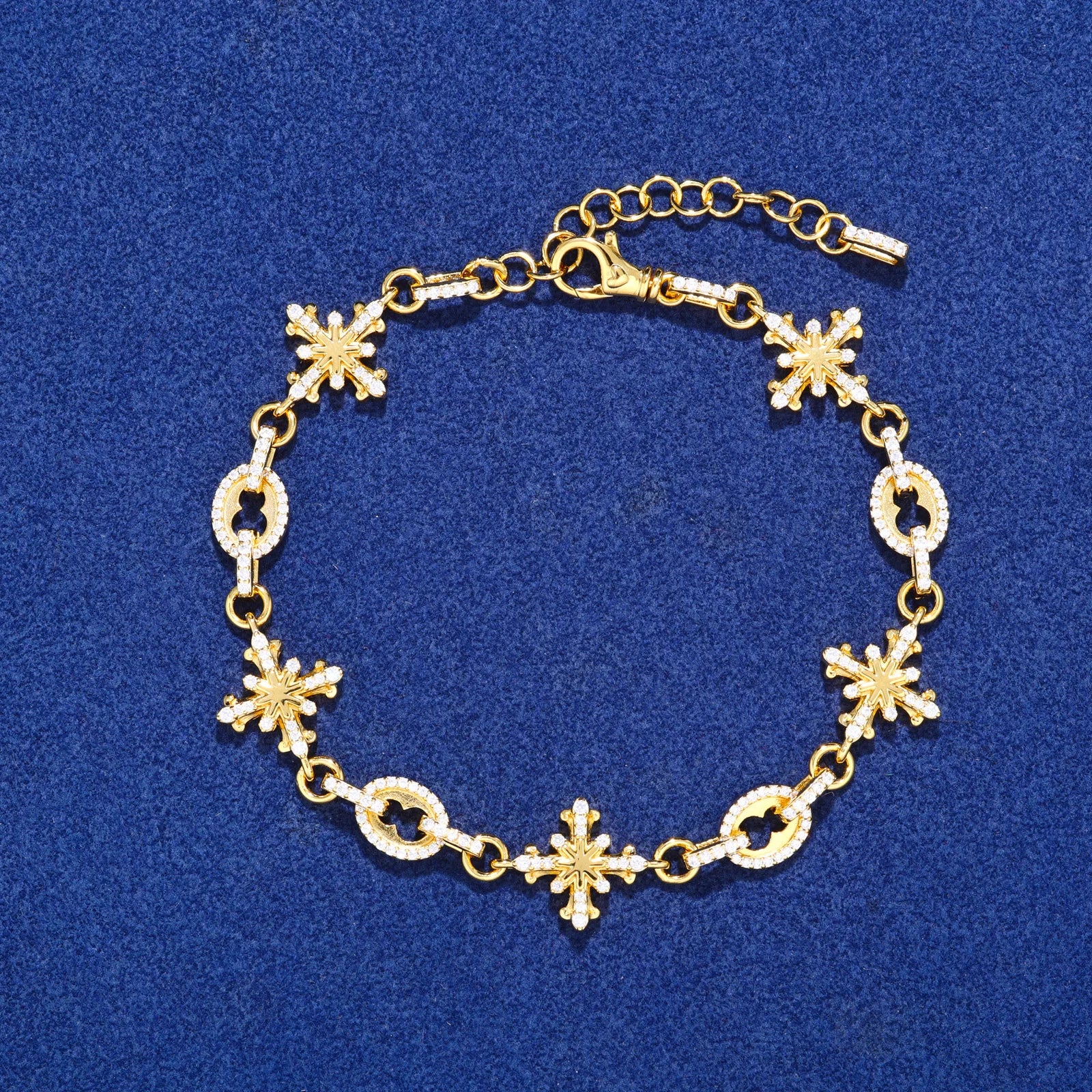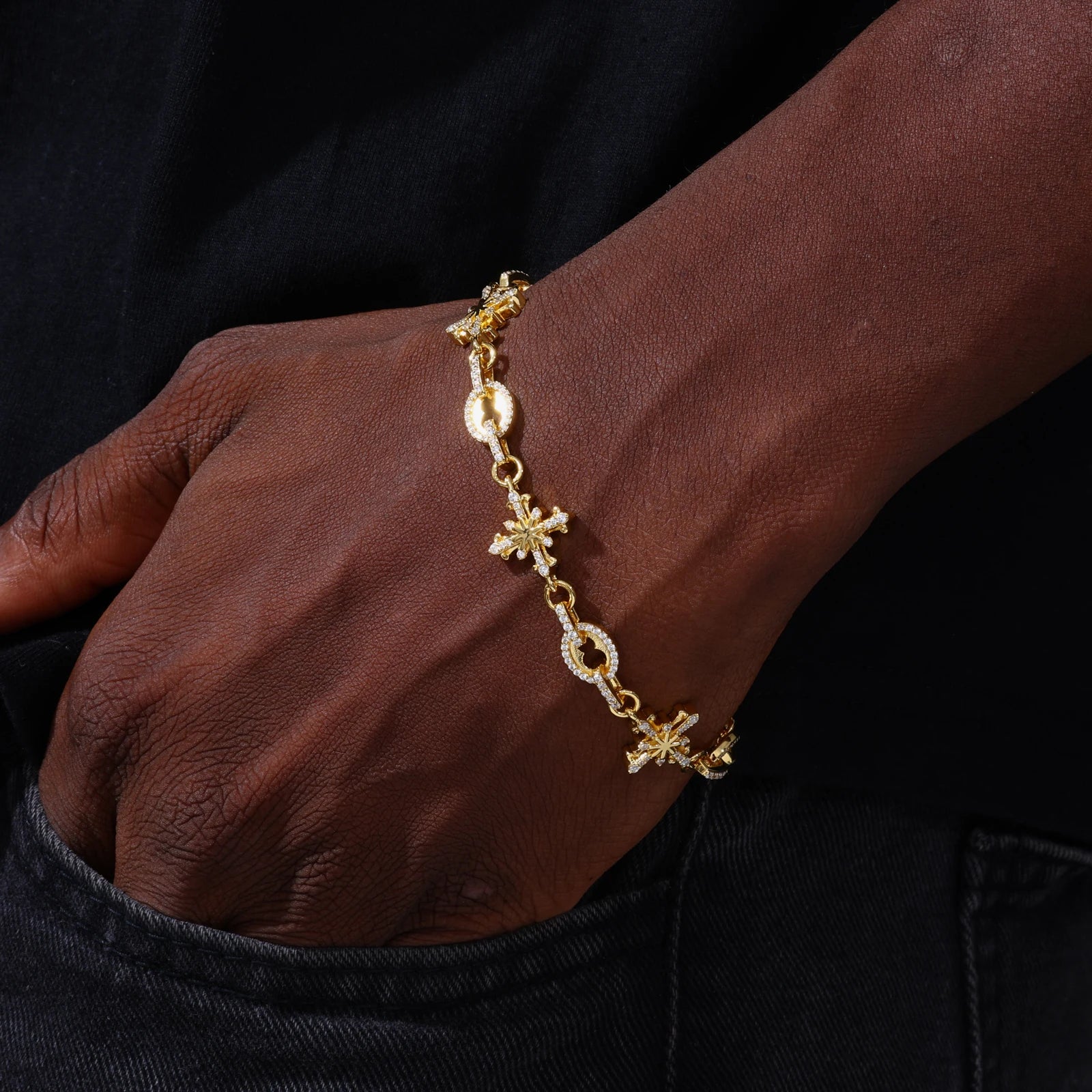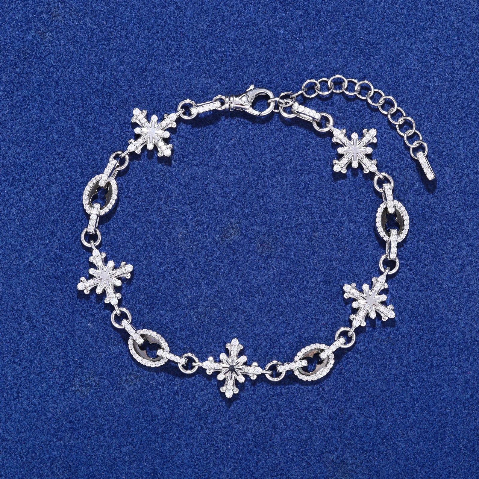 Astrum Cross Moissanite Bracelet in Sterling Silver: blends celestial inspiration with timeless symbolism. Crafted from high-quality 925 sterling silver, this bracelet features precision-set moissanite diamonds that deliver exceptional brilliance and fire. The distinctive cross and star-inspired motifs are linked by polished silver elements, creating a refined balance of elegance and modern design. Designed for everyday comfort and long-lasting shine, this moissanite cross bracelet is ideal for special occasions, elevated daily wear, and meaningful gifting. A sophisticated addition to any fine jewelry collection, offering luxury, symbolism, and contemporary craftsmanship in one statement piece.