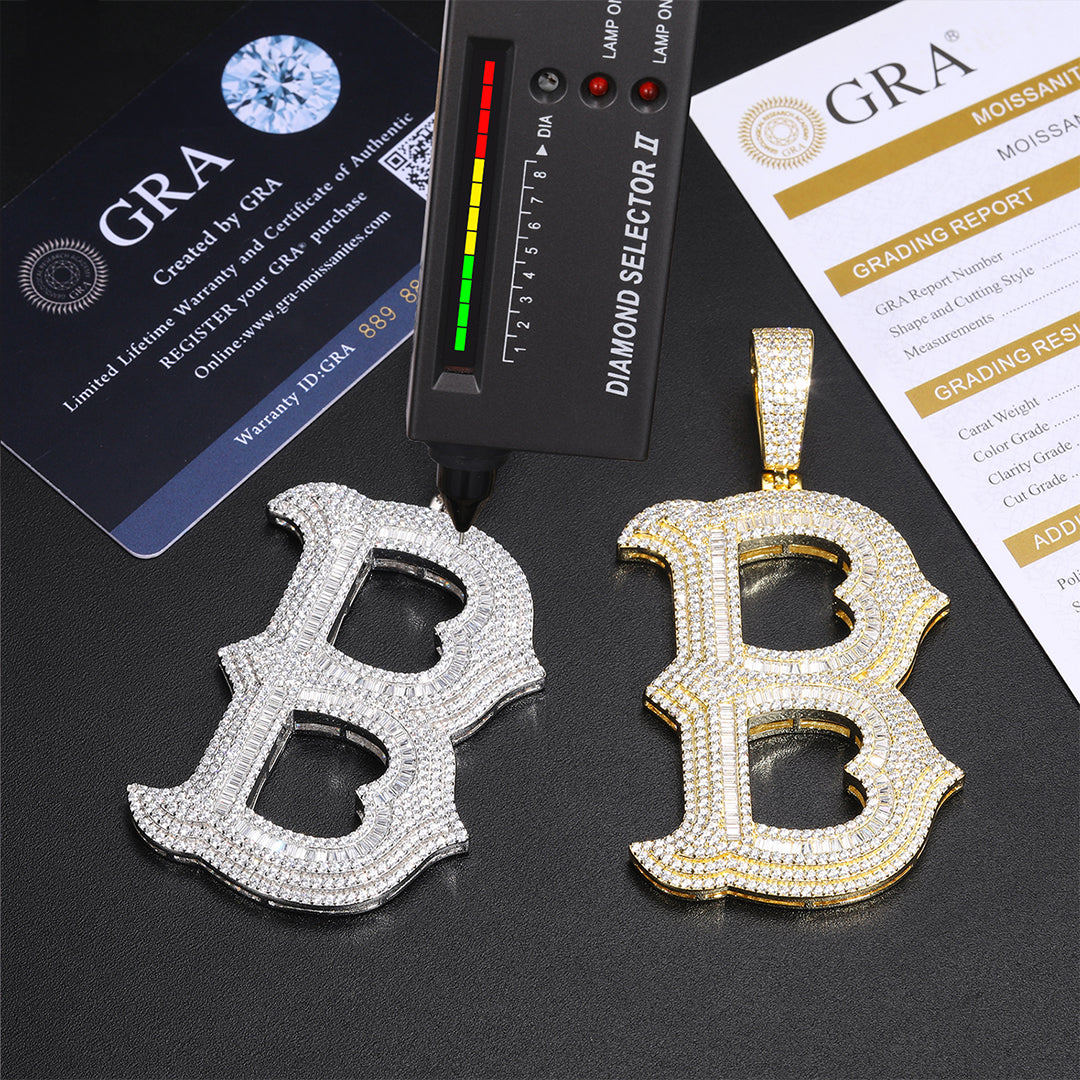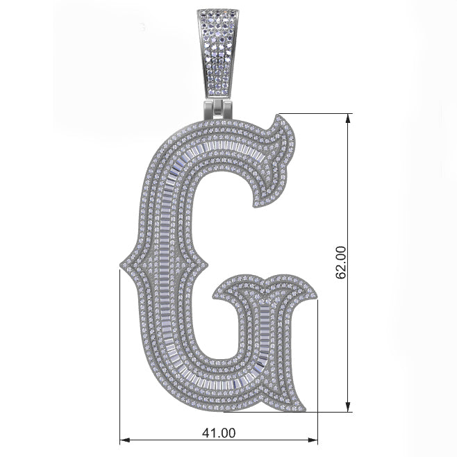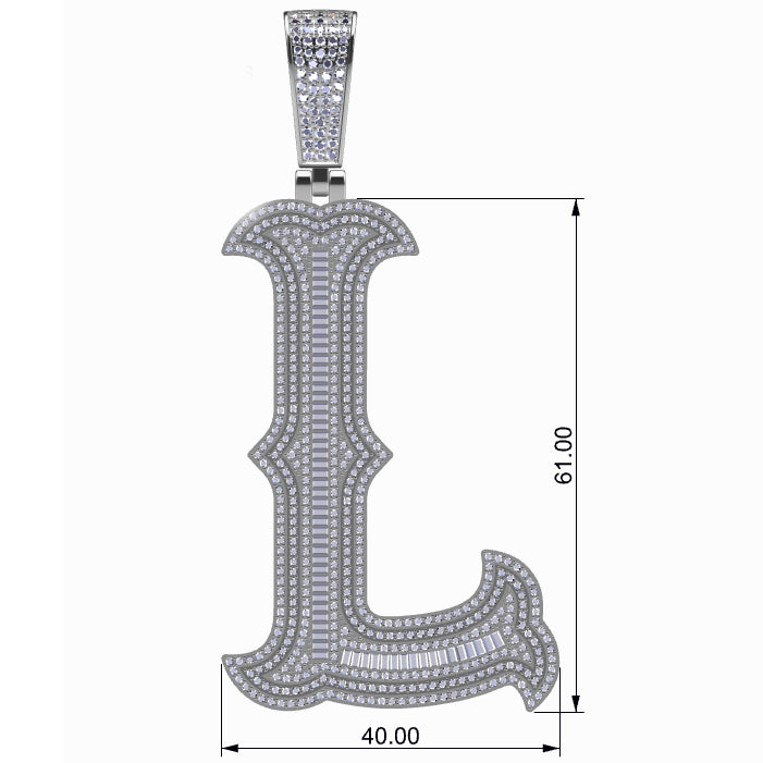 Introducing our Baguette Moissanite Diamond Letter Initial Pendant Necklace in Sterling Silver, a personalized and luxurious accessory. This stunning necklace features a letter initial pendant adorned with sparkling baguette-cut moissanite diamonds, set in high-quality sterling silver. Perfect for those who love to add a unique touch to their style, this pendant combines elegance and individuality, making it a cherished addition to any jewelry collection. ๐Ÿ’Ž๐Ÿ”ค