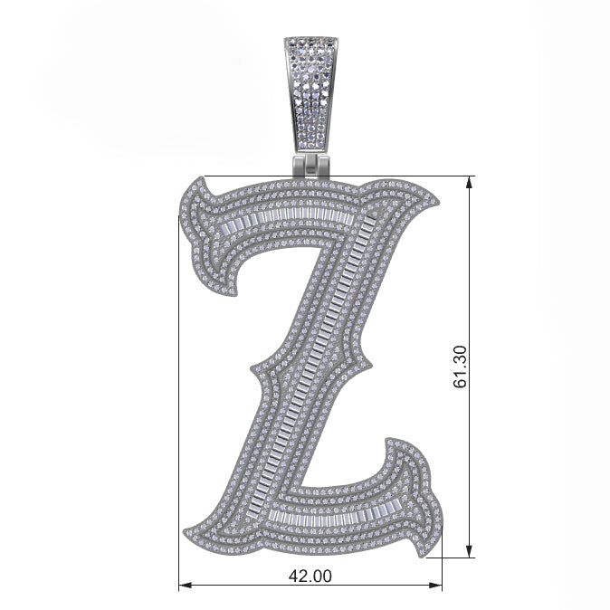 BAGUETTE MOISSANITE DIAMOND LETTER INITIAL PENDANT NECKLACE IN STERLING SILVER