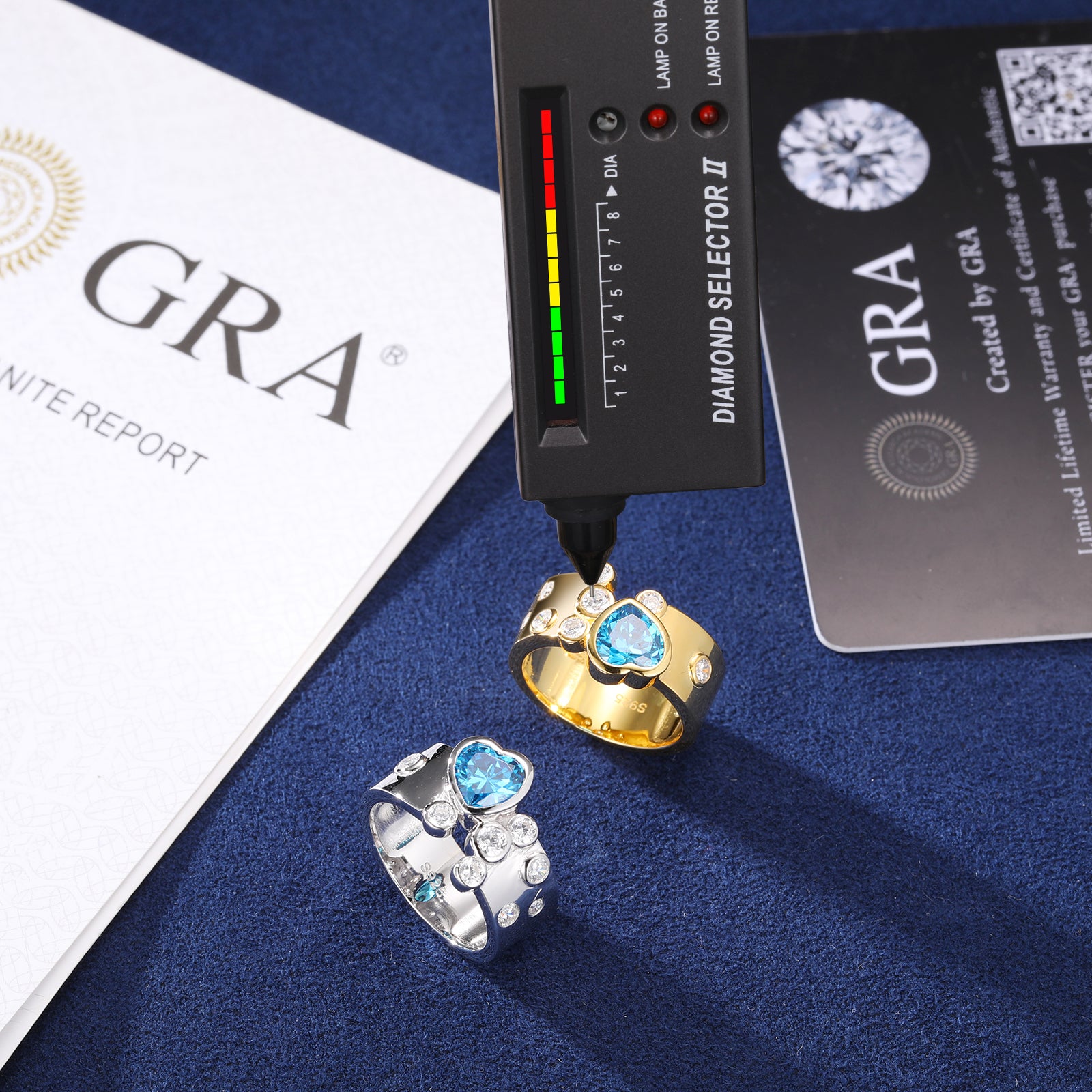 HEART CUT BLUE CZ MOISSANITE DIAMOND BAND RING IN STERLING SILVER