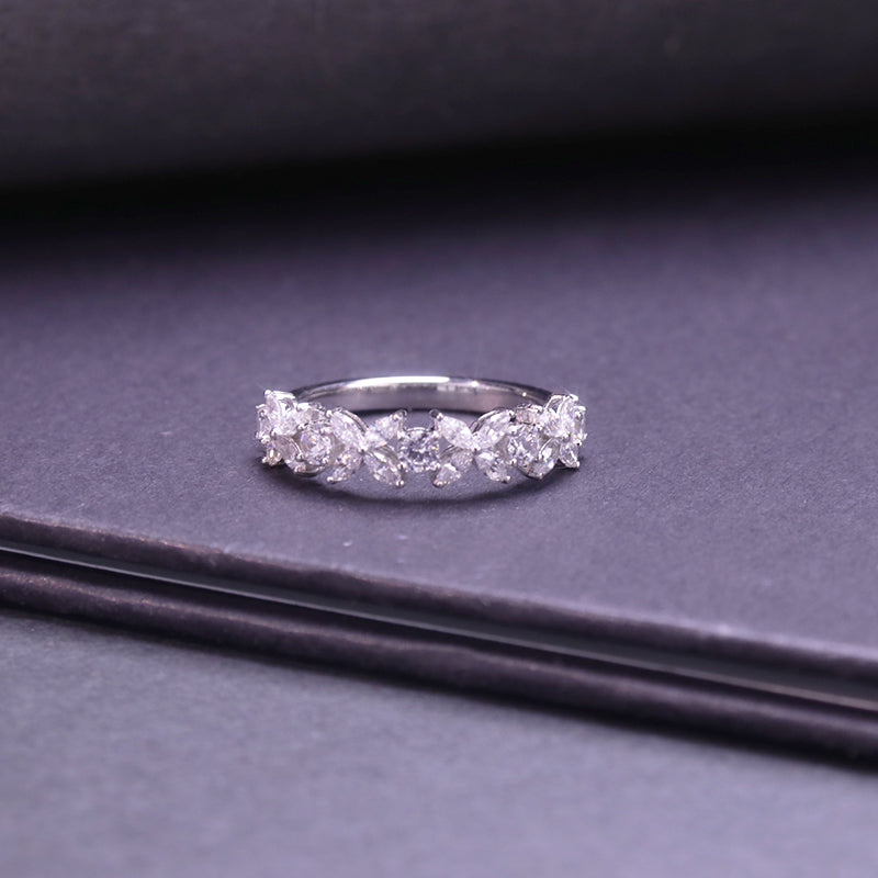 Adorn your fingers with elegance. IE00131 presents a stunning Marquise Cut 3X6mm Moissanite Diamond Ring in sterling silver, embellished with delicate flower accents. Crafted for timeless beauty, this ring exudes grace and sophistication, perfect for any occasion. Elevate your style with its exquisite design and sparkle. A symbol of love and refinement, it adds a touch of floral charm to your ensemble.