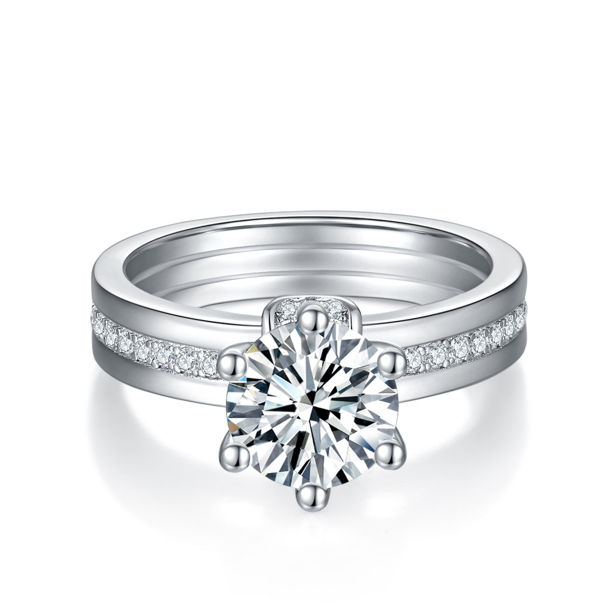 IE0227 2CT ROUND BRILLIANT CUT MOISSANITE RING IN STERLING SILVER
