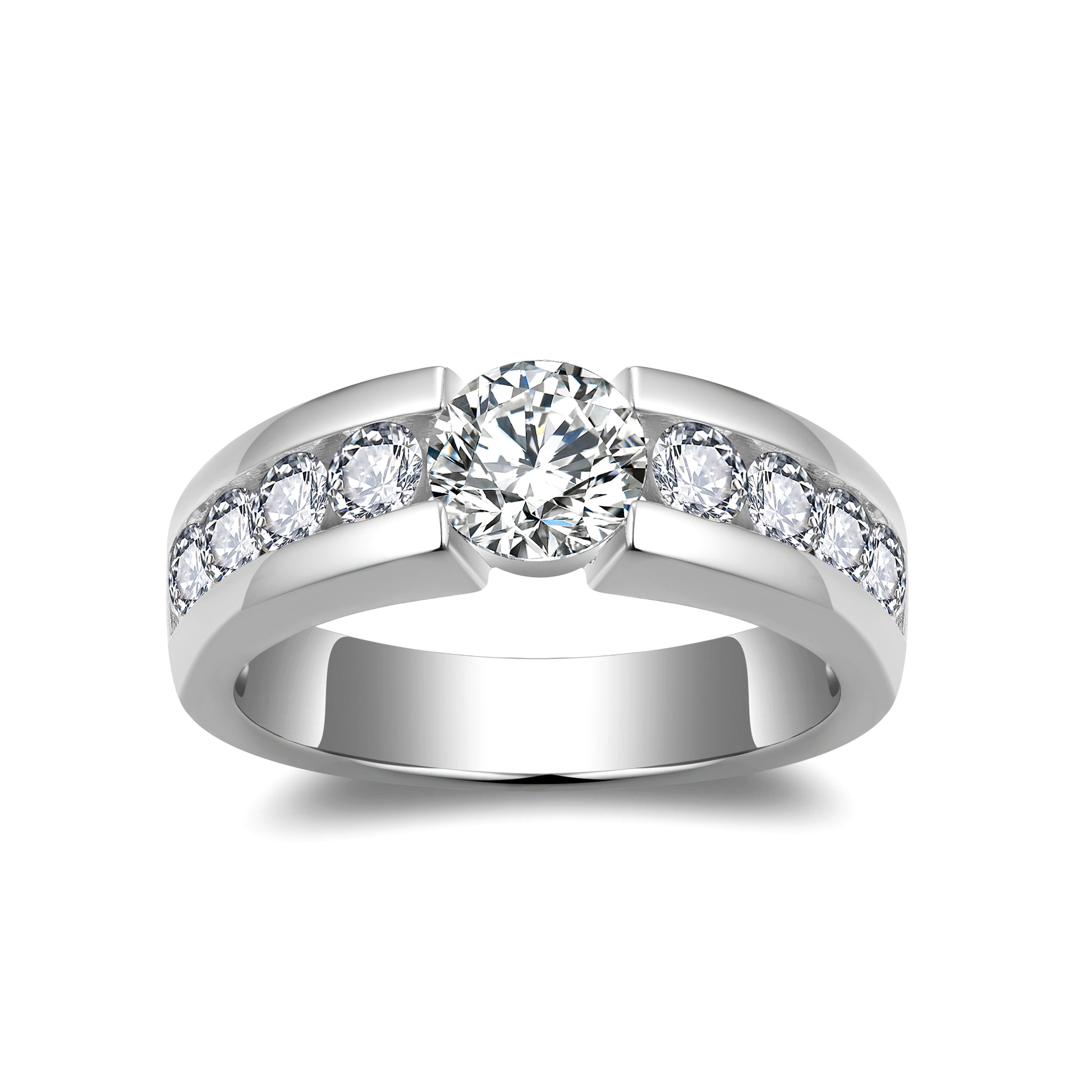 IE0299 1 CARAT ROUND CUT MOISSANITE BAND RING IN STERLING SILVER