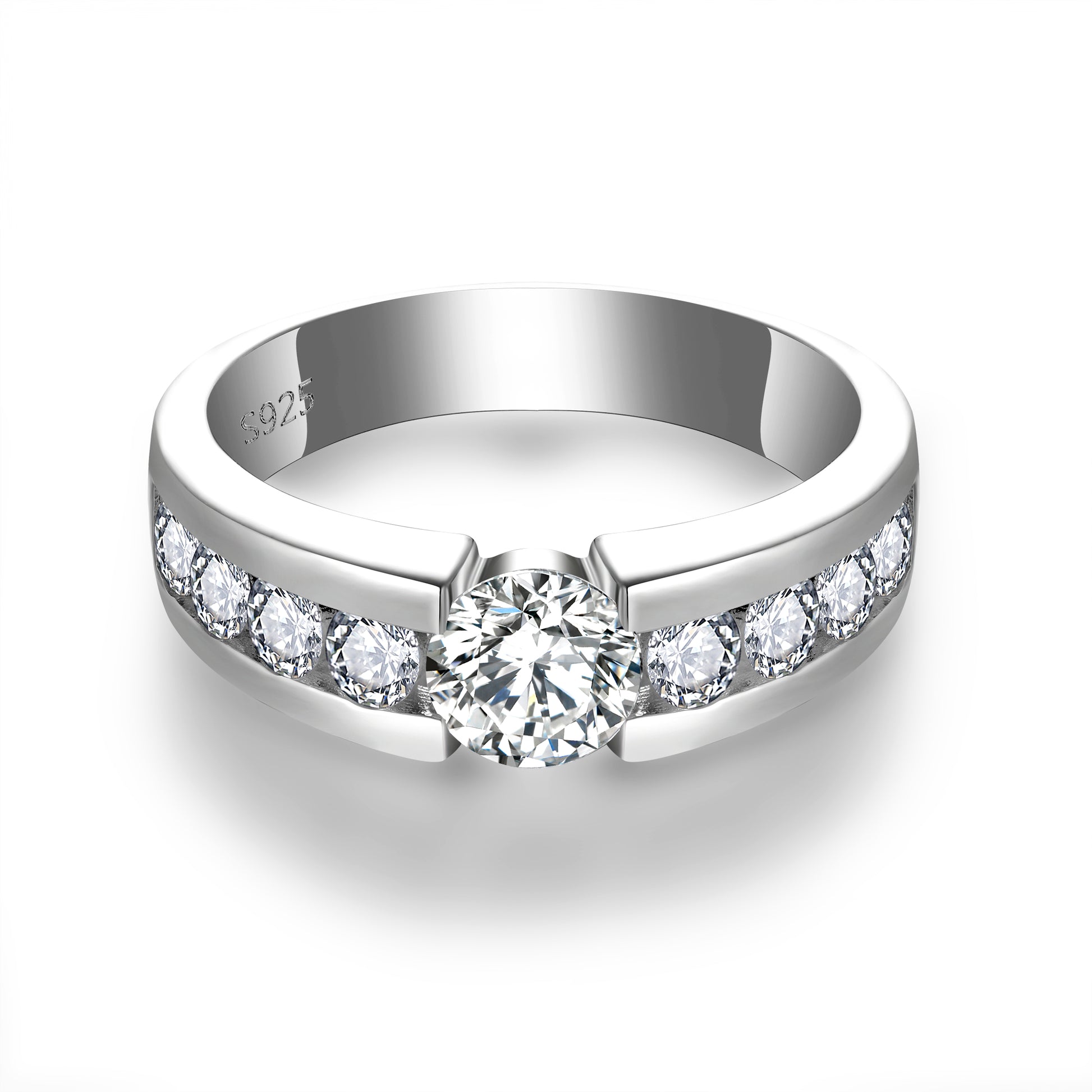 Introducing our IE0299 1 Carat Round Cut Moissanite Band Ring in Sterling Silver, adorned with multiple sparkling round-cut moissanite stones. This elegant ring features a band design, carefully set with brilliant moissanite gems that collectively total 1 carat. Crafted in sterling silver, it blends classic sophistication with modern allure, making it perfect for everyday wear or as a statement piece for special occasions. Embrace the brilliance and beauty of this exquisite ring, designed to captivate and delight. 💍💎