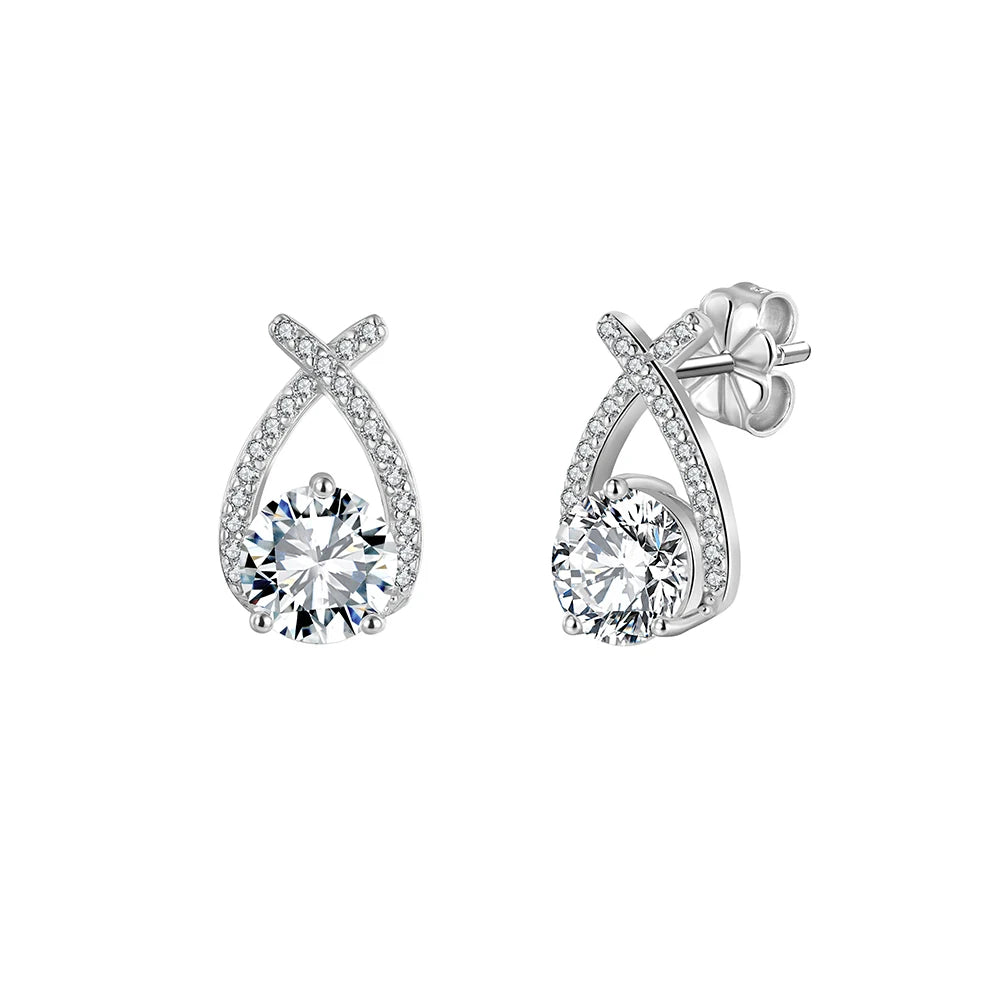 Infinity Drop Moissanite Studs Earrings in Sterling Silver: These stud earrings feature an elegant infinity-inspired drop accented with sparkling moissanite for a graceful, modern look. Crafted in high-quality sterling silver, they deliver diamond-like brilliance with a lightweight, comfortable fit. Perfect for everyday wear or subtle evening styling, these earrings add effortless movement and refined shine to any outfit.
