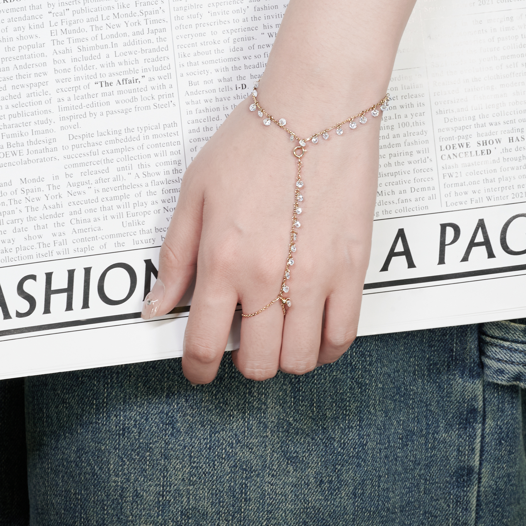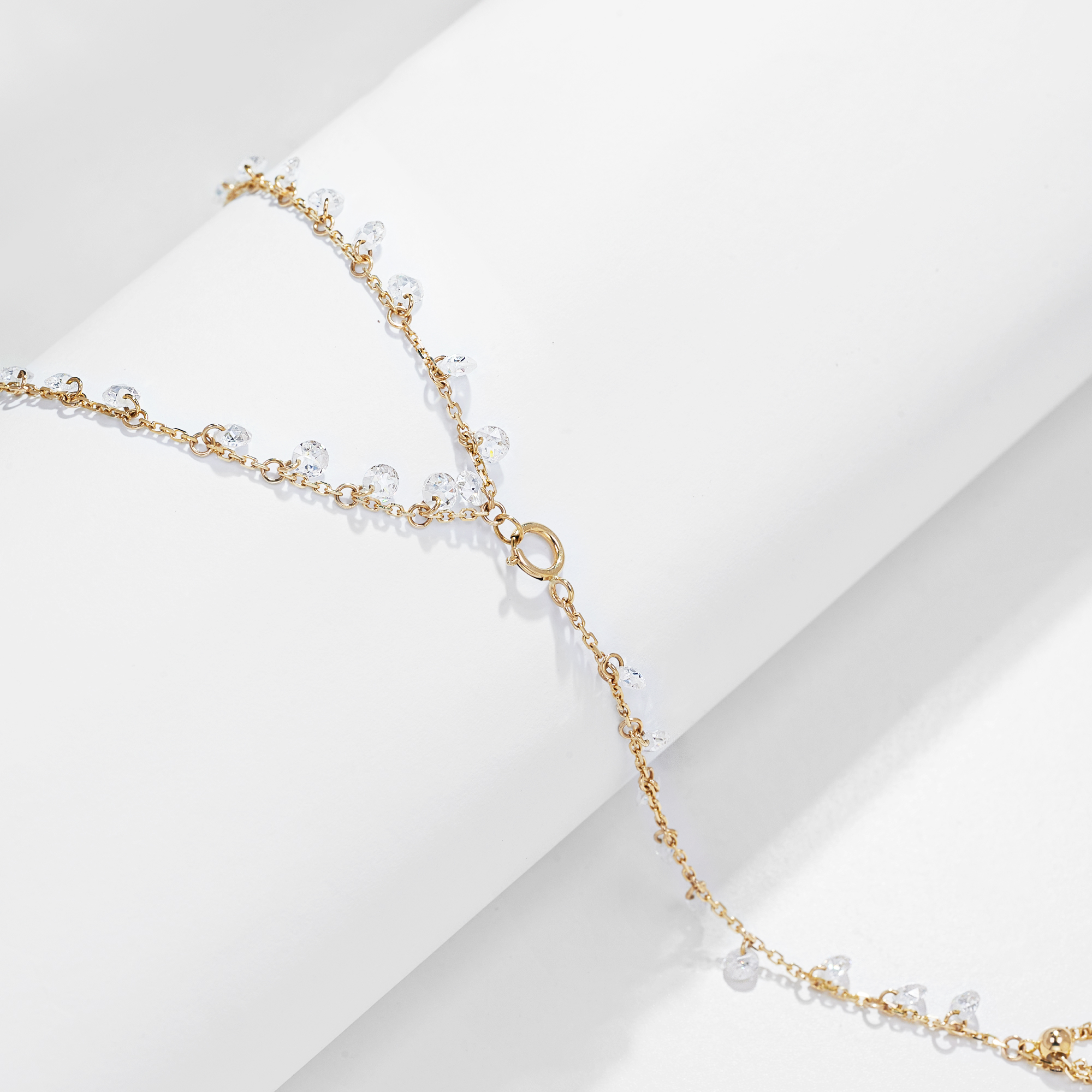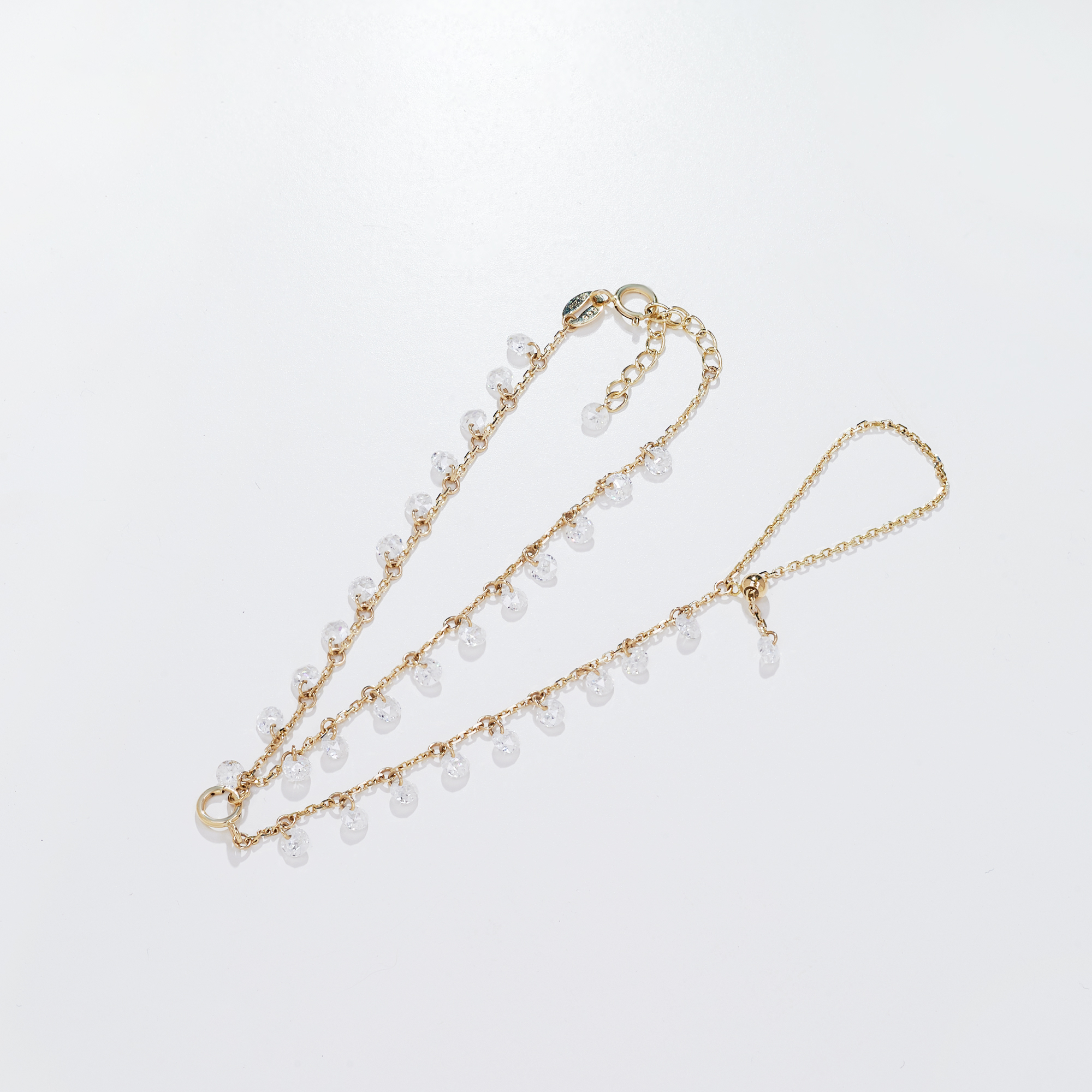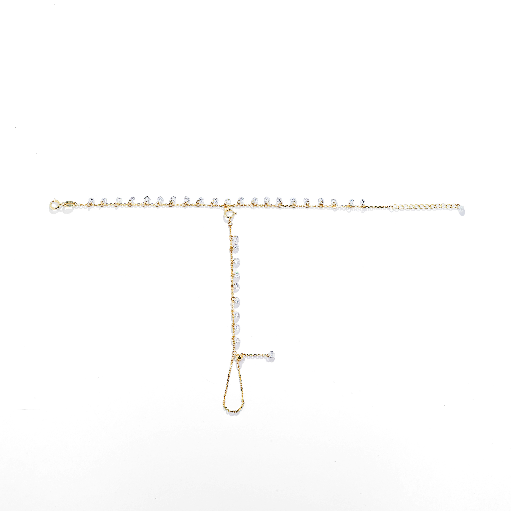 MOISSANITE DANGLE HAND HARNESS BRACELET IN SOLID GOLD