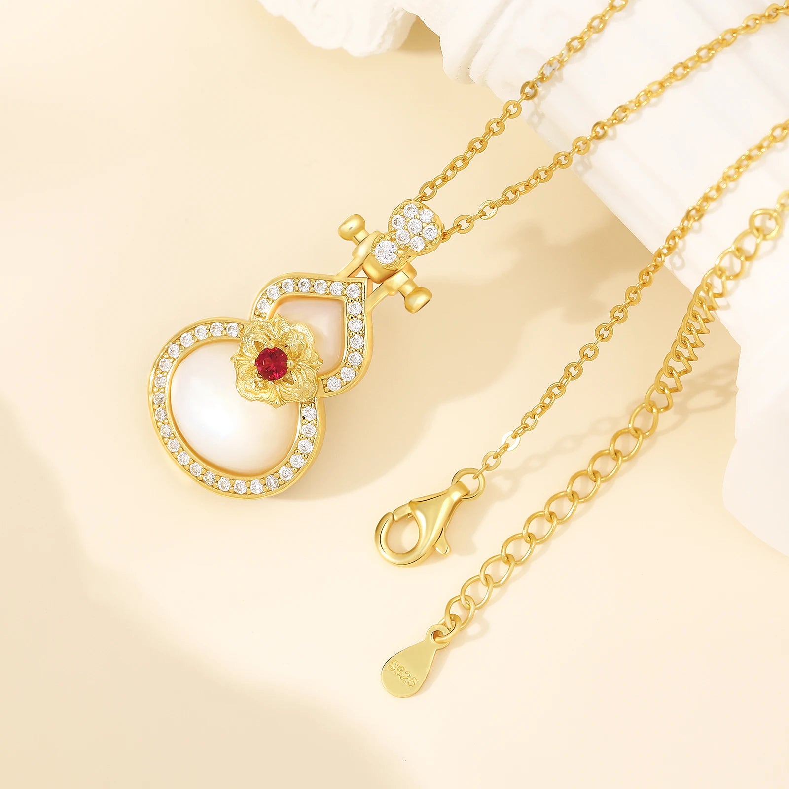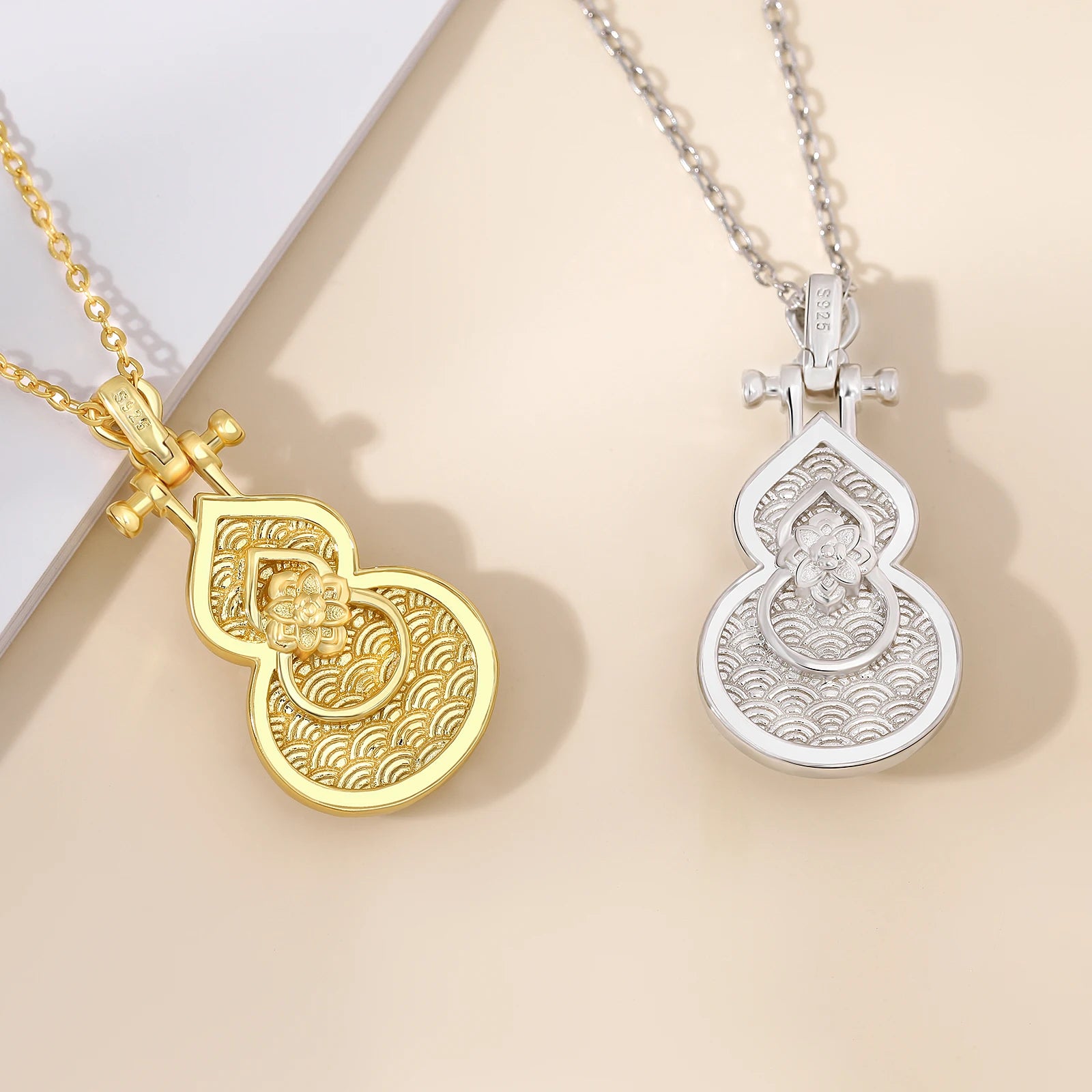 Moissanite Diamond Double Sided Pearl Gourd Pendant in Sterling Silver: This elegant pendant blends tradition with modern sparkle ✨. Crafted in sterling silver, it features a double-sided gourd design accented with brilliant moissanite diamonds and a smooth, lustrous pearl. Symbolizing good fortune and harmony, the gourd shape adds cultural meaning while the dual-sided detailing creates a dynamic, refined look. Perfect for elevating both casual and formal outfits, it brings timeless elegance and positive energy to every wear 🌟.