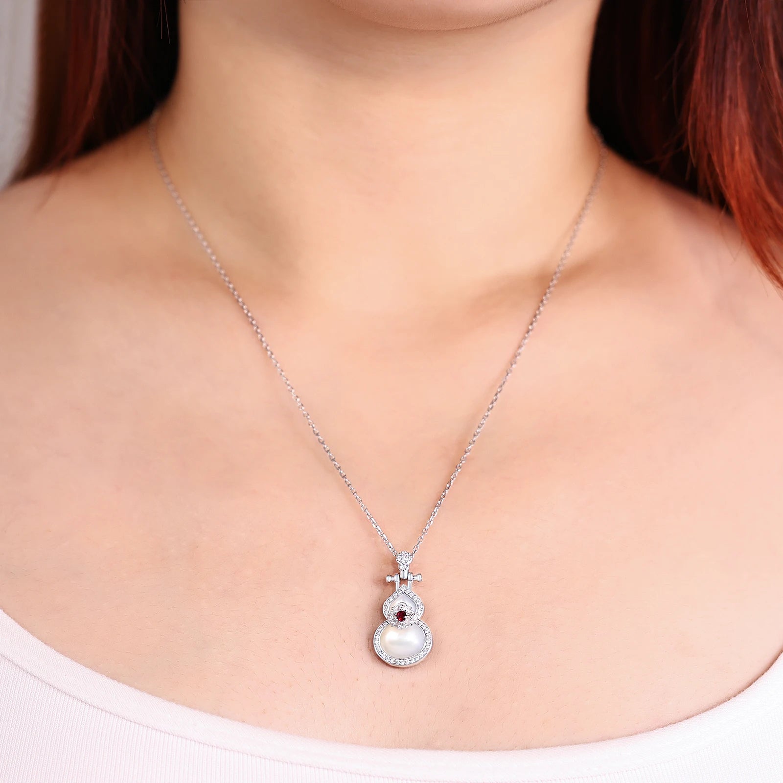 MOISSANITE DIAMOND DOUBLE SIDED PEARL GOURD PENDANT IN STERLING SILVER