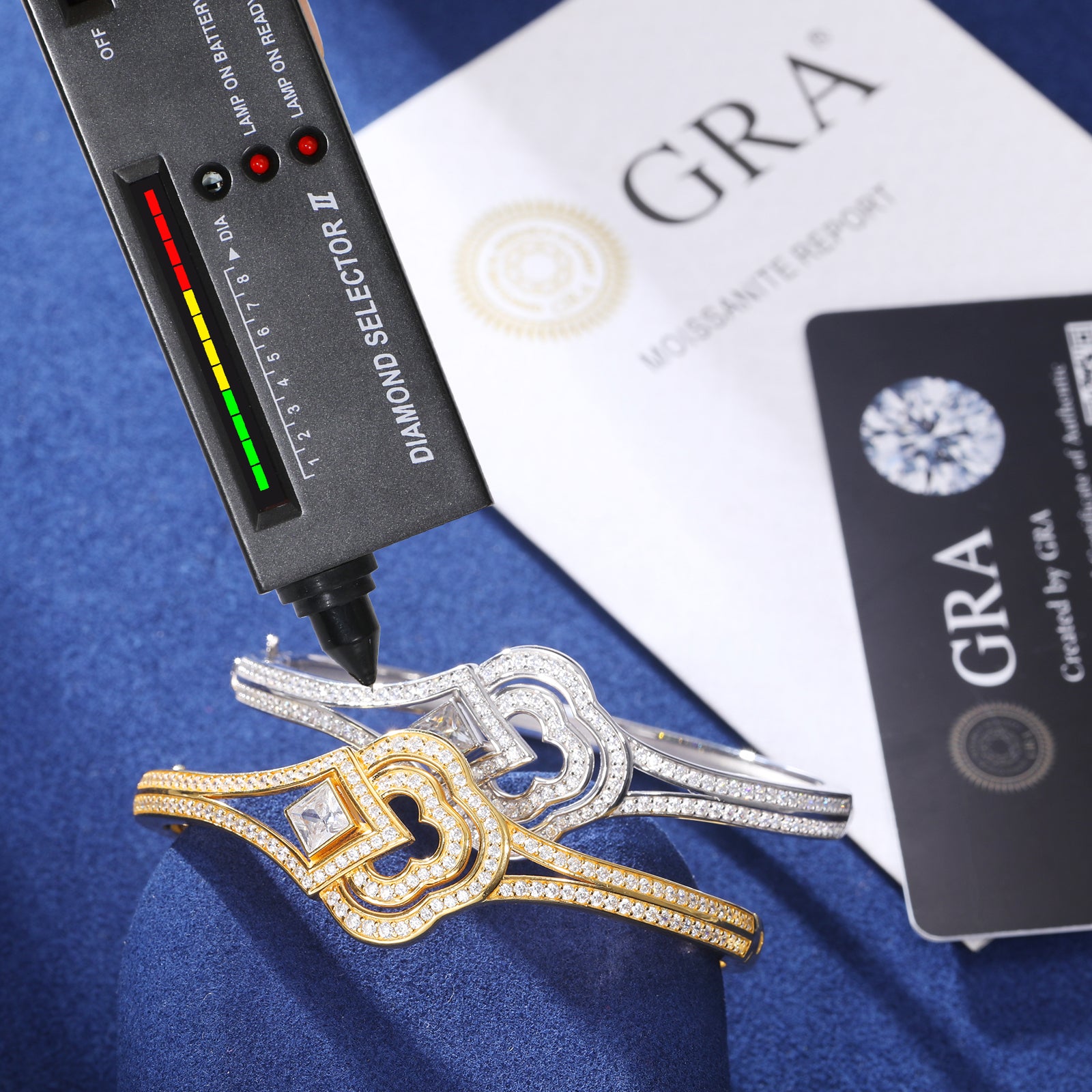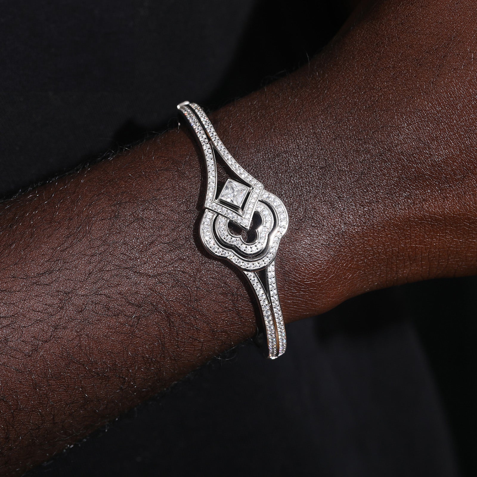 MOISSANITE DIAMOND MORNING GLORY BANGLE BRACELET IN STERLING SILVER